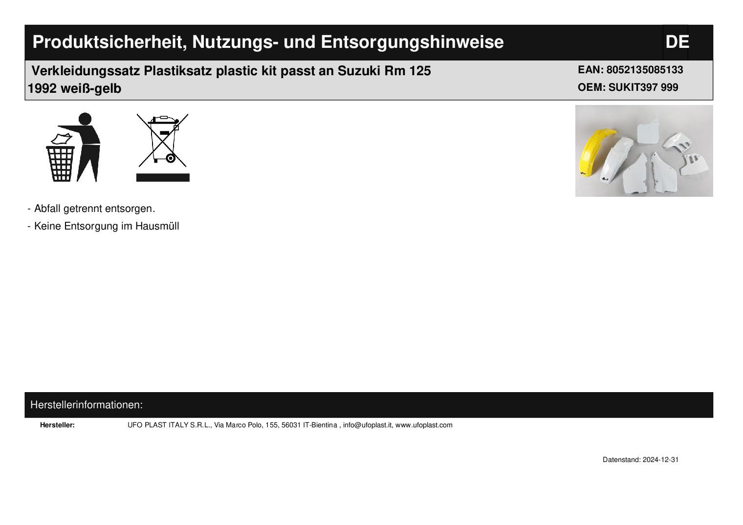 Titel: Verkleidungssatz Plastiksatz plastic kit passt an Suzuki Rm 125 1992 gelb