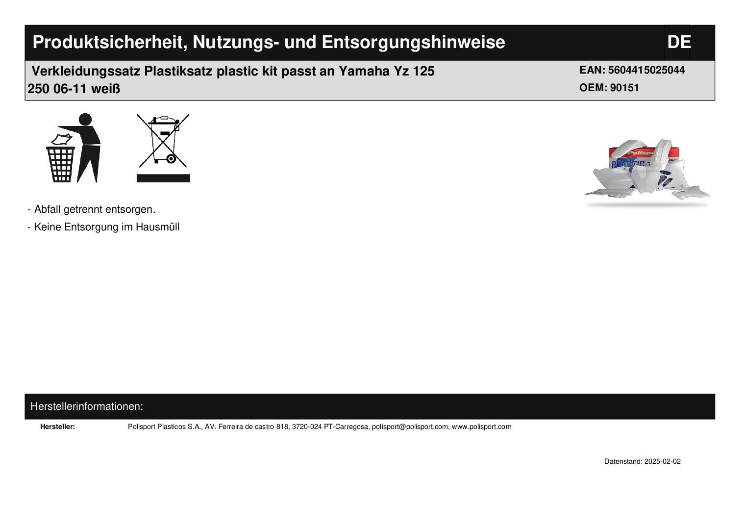 In dieser Auktion gibt es folgenden Artikel zu kaufen: Verkleidungssatz (siehe Foto) Fahrzeug: passend für Yamaha Yz 125 250 Bj.: 2006 - 2011 (2-Takt) Lieferumfang: Tankverkleidung Seitenverkleidung Startnummerntafel Schutzblech vorne Schutzblech hinten Artikelzustand: neu aus Geschäftsauflösung, mit leichten Lagerspuren; Zustand siehe Foto Bei Unklarheiten oder Fragen bitte erst E-Mail schreiben.
