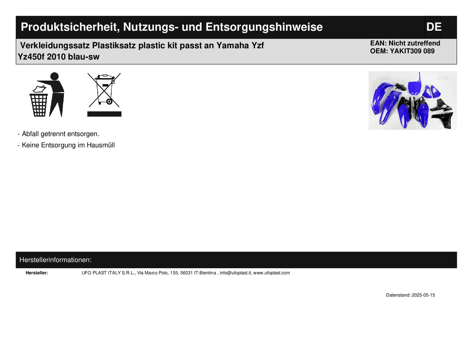 In dieser Auktion gibt es folgenden Artikel zu kaufen: Verkleidungssatz (ähnlich Foto) Fahrzeug: passend für Yamaha Yz-f 450 Bj.: 2010 (4-Takt) Lieferumfang: siehe Foto Artikelzustand: neu aus Geschäftsauflösung, mit minimalen Lagerspuren; Zustand siehe Foto Hierbei handelt es sich um kein Originalteil. Bei Unklarheiten oder Fragen bitte erst E-Mail schreiben.