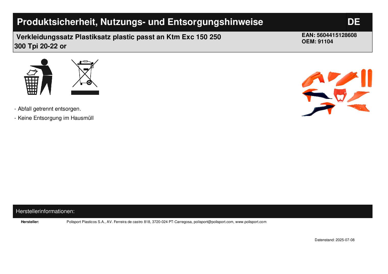 In dieser Auktion gibt es folgenden Artikel zu kaufen: Verkleidungssatz (siehe Foto) Modell: passend für KTM EXC 150 TPI Bj.: 2020 - 2023 EXC 250 TPI Bj.: 2020 - 2023 EXC 250 TPI Sixdays Bj.: 2020 - 2023 EXC 300 TPI Bj.: 2020 - 2023 EXC 300 TPI Erzberg Edition Bj.: 2020 - 2023 EXC TPI Sixdays Bj.: 2021 - 2023 EXC-F 250 ie 4T Bj.: 2020 - 2023 EXC-F 250 ie 4T Sixdays Bj.: 2020 - 2023 EXC-F 350 ie 4T Bj.: 2020 - 2023 EXC-F 350 ie 4T Factory Edition Bj.: 2023 EXC-F 350 ie 4T Sixdays Bj.: 2020 - 2023 Lieferumfang: siehe Foto Artikelzustand: neu Hierbei handelt es sich um kein Originalteil! Bei Unklarheiten oder Fragen bitte erst E-Mail schreiben.