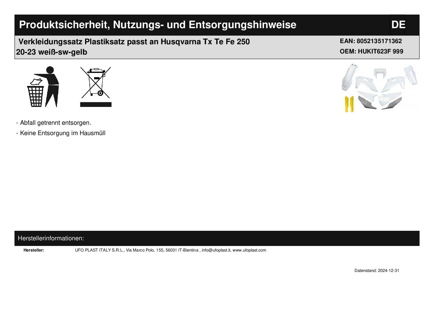 Titel: Verkleidungssatz Plastiksatz passt an Husqvarna Tx Te Fe 250 20-23 weiß-sw-gelb