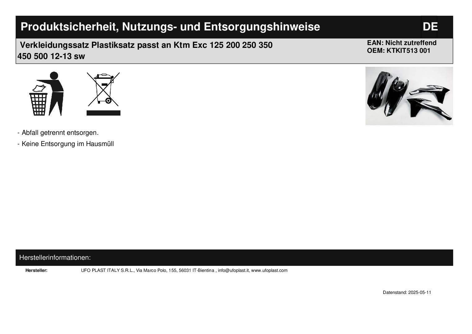 In dieser Auktion gibt es folgenden Artikel zu kaufen: Verkleidungssatz (ähnlich Foto) Fahrzeug: passend für Ktm Exc 125 Bj.: 2012 - 2013 (2-Takt) Exc 200 Bj.: 2012 - 2013 (2-Takt) Exc 250 Bj.: 2012 - 2013 (2-Takt) Exc-f 250 Bj.: 2012 - 2013 (4-Takt) Exc-f 300 Bj.: 2012 - 2013 (4-Takt) Exc-f 450 Bj.: 2012 - 2013 (4-Takt) Exc-f 500 Bj.: 2012 - 2013 (4-Takt) Lieferumfang: Tankverkleidung links + rechts Schutzblech vorne Schutzblech hinten Artikelzustand: neu aus Geschäftsauflösung, mit minimalen Lagerspuren; Zustand ähnlich Foto Bei Unklarheiten oder Fragen bitte erst E-Mail schreiben.