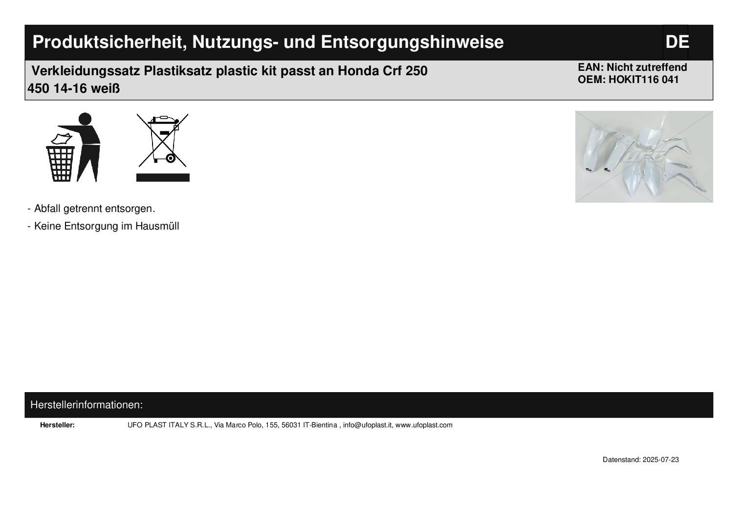 In dieser Auktion gibt es folgenden Artikel zu kaufen: Verkleidungssatz (ähnlich Foto) Fahrzeug: passend für Honda Cr-f 250 R Bj.: 2014 - 2017 (4-Takt) Cr-f 450 R Bj.: 2013 - 2016 (4-Takt) Lieferumfang: Tankverkleidung links + rechts Seitenverkleidung links + rechts Startnummerntafel Schutzblech vorne Schutzblech hinten Artikelzustand: neu aus Geschäftsauflösung, mit minimalen Lagerspuren; Zustand siehe Foto Bei Unklarheiten oder Fragen bitte erst E-Mail schreiben.