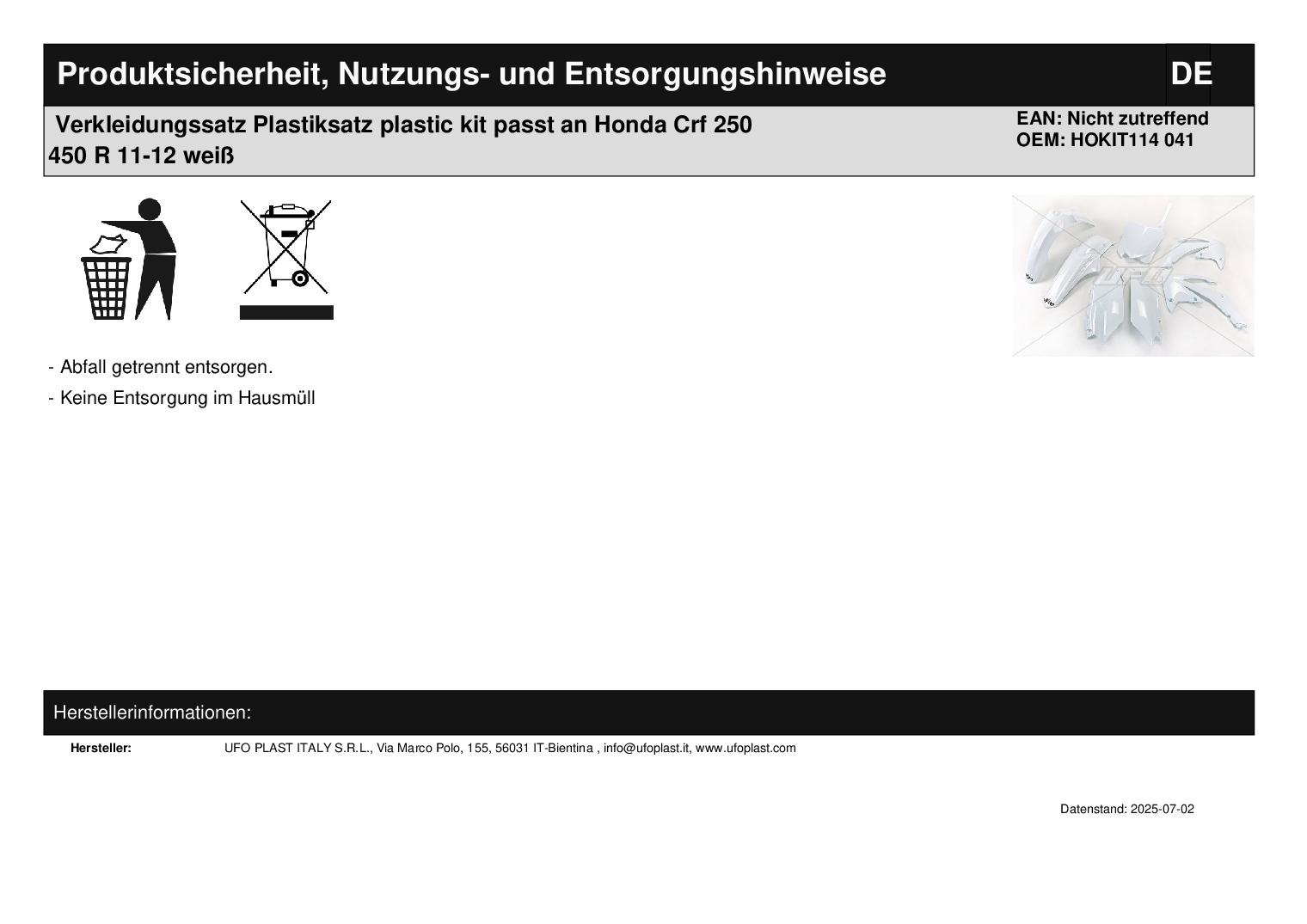 In dieser Auktion gibt es folgenden Artikel zu kaufen: Verkleidungssatz (ähnlich Foto) Fahrzeug: passend für Honda Cr-f 250 R Bj.: 2011 - 2013 (4-Takt) Cr-f 450 R Bj.: 2011 - 2012 (4-Takt) Lieferumfang: Tankverkleidung links + rechts Seitenverkleidung links + rechts Startnummerntafel Schutzblech vorne Schutzblech hinten Artikelzustand: neu aus Geschäftsauflösung, mit minimalen Lagerspuren; Zustand siehe Foto Bei Unklarheiten oder Fragen bitte erst E-Mail schreiben.