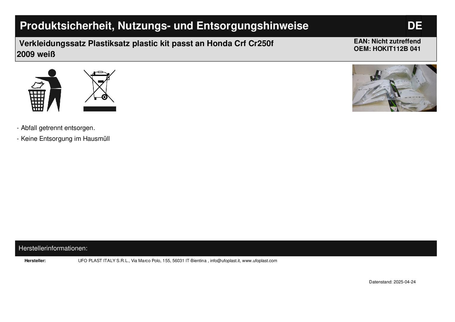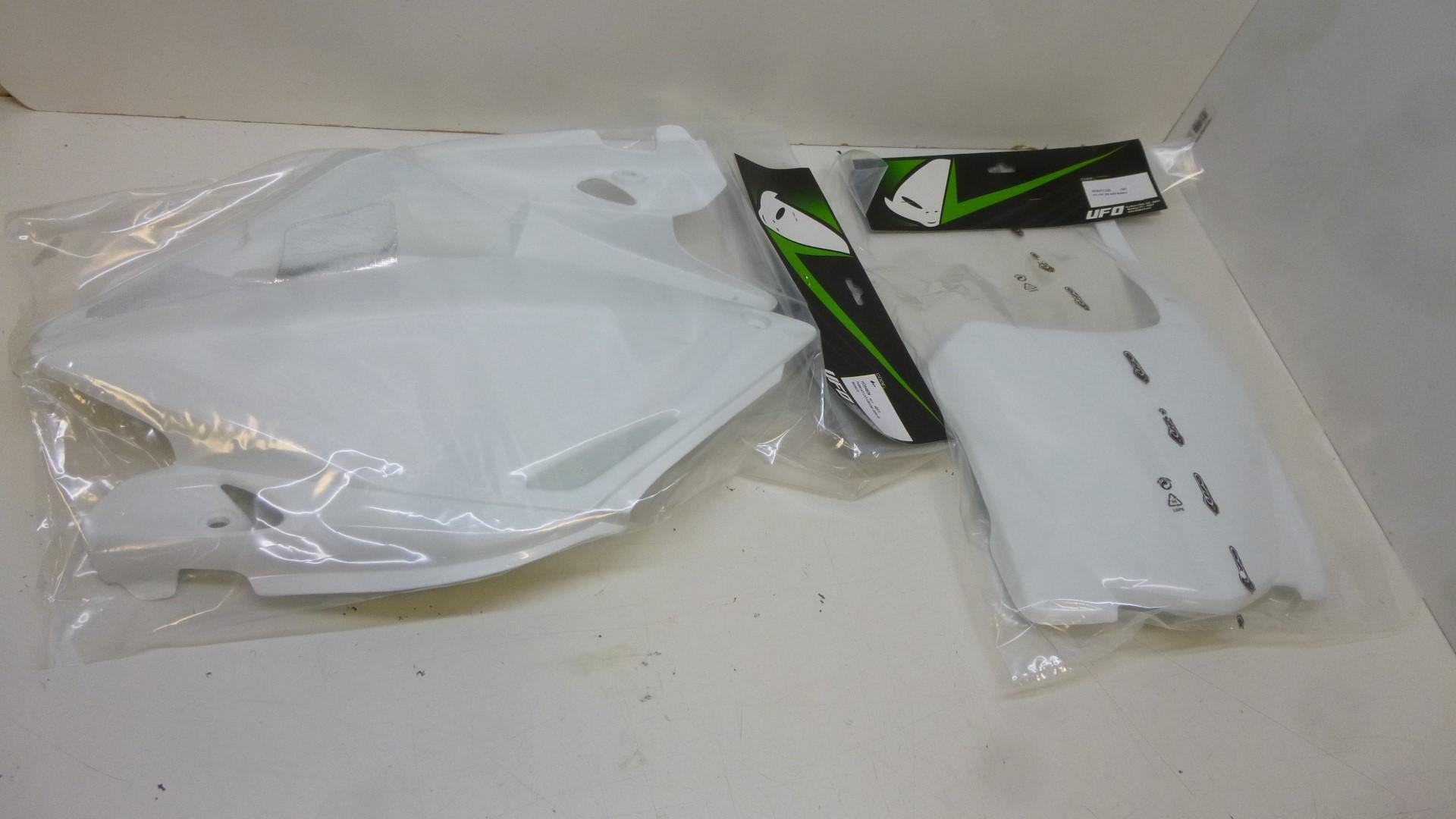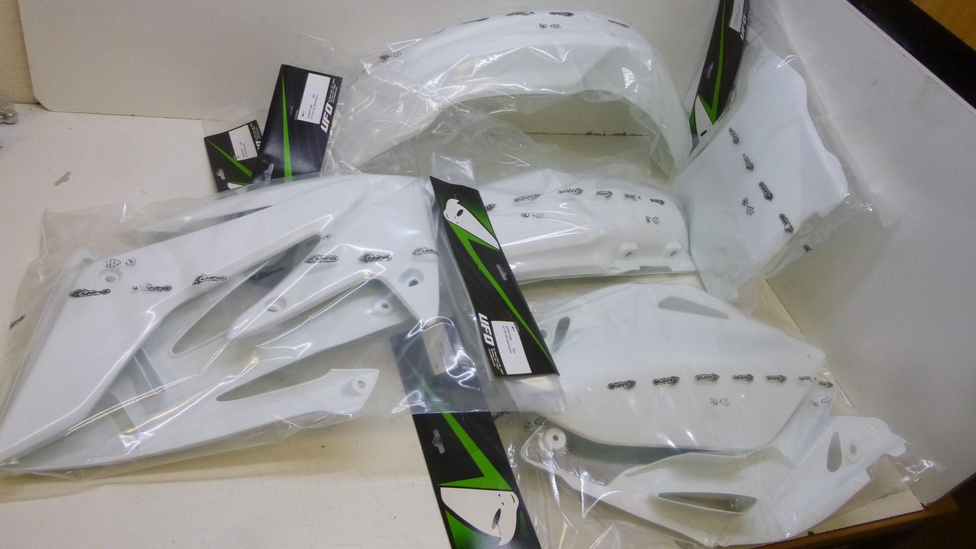 In dieser Auktion gibt es folgenden Artikel zu kaufen: Verkleidungssatz (ähnlich Foto) Fahrzeug: passend für Honda Cr-f 250 R Bj.: 2008 - 2009 (4-Takt) Lieferumfang: Tankverkleidung links + rechts Seitenverkleidung links + rechts Startnummerntafel Schutzblech vorne Schutzblech hinten Artikelzustand: neu aus Geschäftsauflösung, mit minimalen Lagerspuren; Zustand siehe Foto Hierbei handelt es sich um kein Originalteil! Bei Unklarheiten oder Fragen bitte erst E-Mail schreiben.