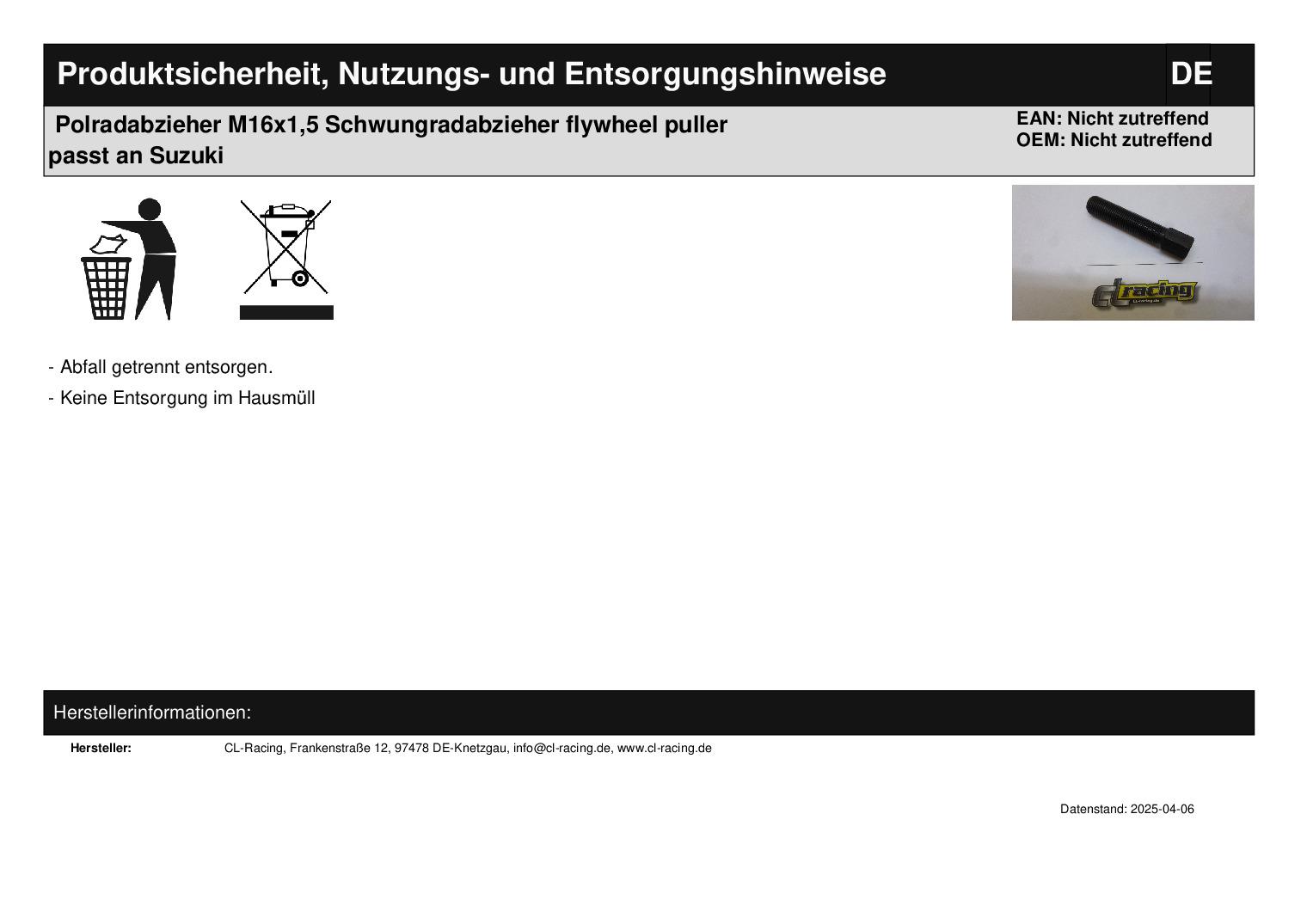 In dieser Auktion gibt es folgenden Artikel zu kaufen: Polradabzieher / Abzieher (siehe Foto) Modell: passend für Yamaha FZS 1000 Bj.: 2001 - 2005 YZF-R1 1000 Bj.: 1998 - 2003 Gewinde: M16 x 1,5 RH (Rechtsgewinde) Bitte Abmaße prüfen, da es unterschiedliche Ausführungen gibt!!! Lieferumfang: 1 Stück Artikelzustand: neu Bei Unklarheiten oder Fragen bitte erst E-Mail schreiben.