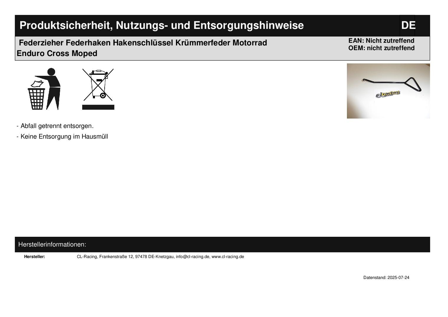 In dieser Auktion gibt es folgenden Artikel zu kaufen: Federzieher, leicht abgewinkelt (siehe Foto) Artikelbeschreibung: Werkzeug zum Montieren von Krümmer- oder Auspufffedern Länge: 17,5 cm Lieferumfang: 1 Stück Artikelzustand: neu Bei Unklarheiten oder Fragen bitte erst E-Mail schreiben.