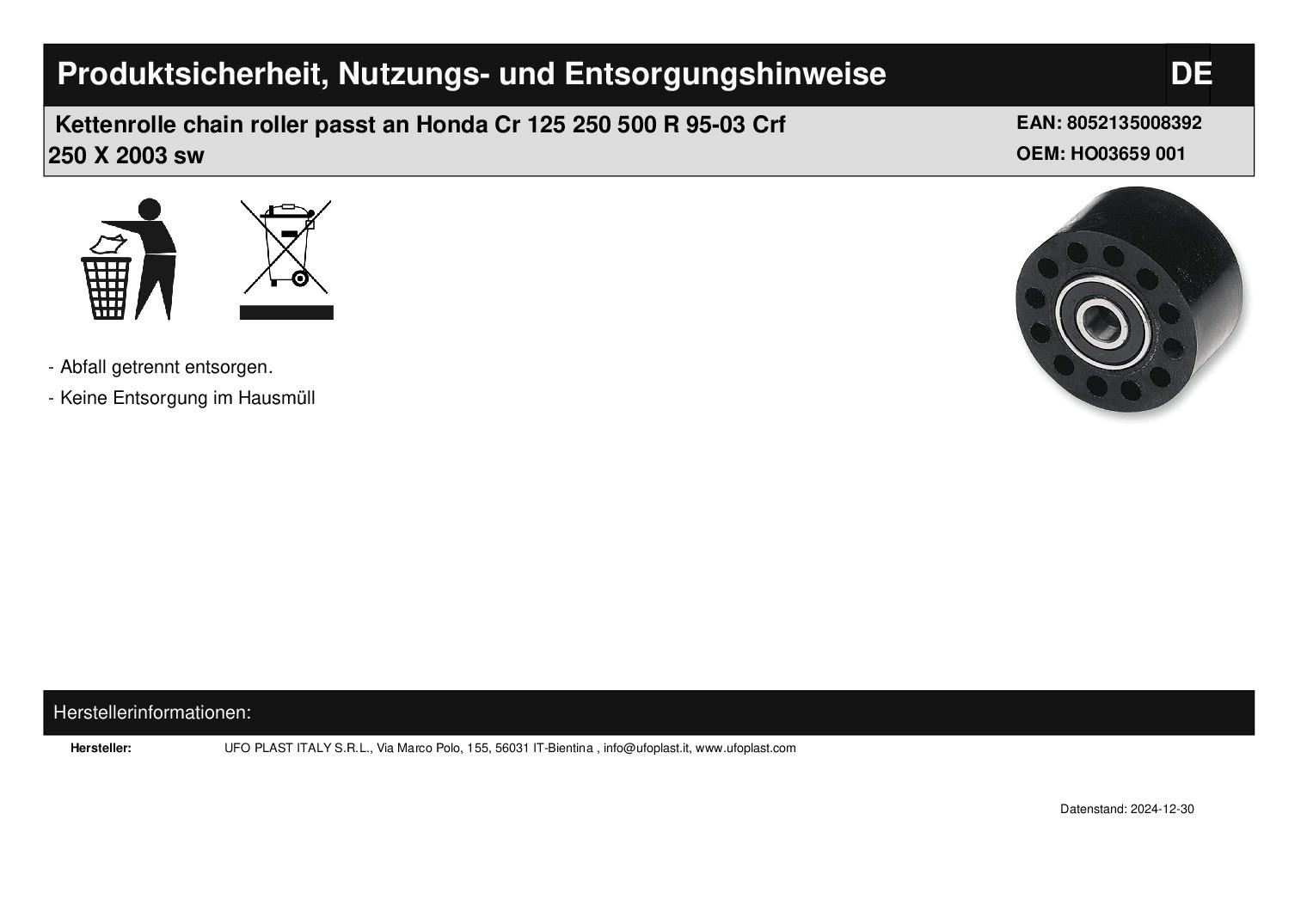 In dieser Auktion gibt es folgenden Artikel zu kaufen: Kettenrolle (ähnlich Foto) Modell: passend für Honda CR 125 R, 250 R, 500 R Bj.: 95 - 03 CRF 250 X Bj.: 2004 Lieferumfang: siehe Foto Artikelzustand: neu Bei Unklarheiten oder Fragen bitte erst E-Mail schreiben.