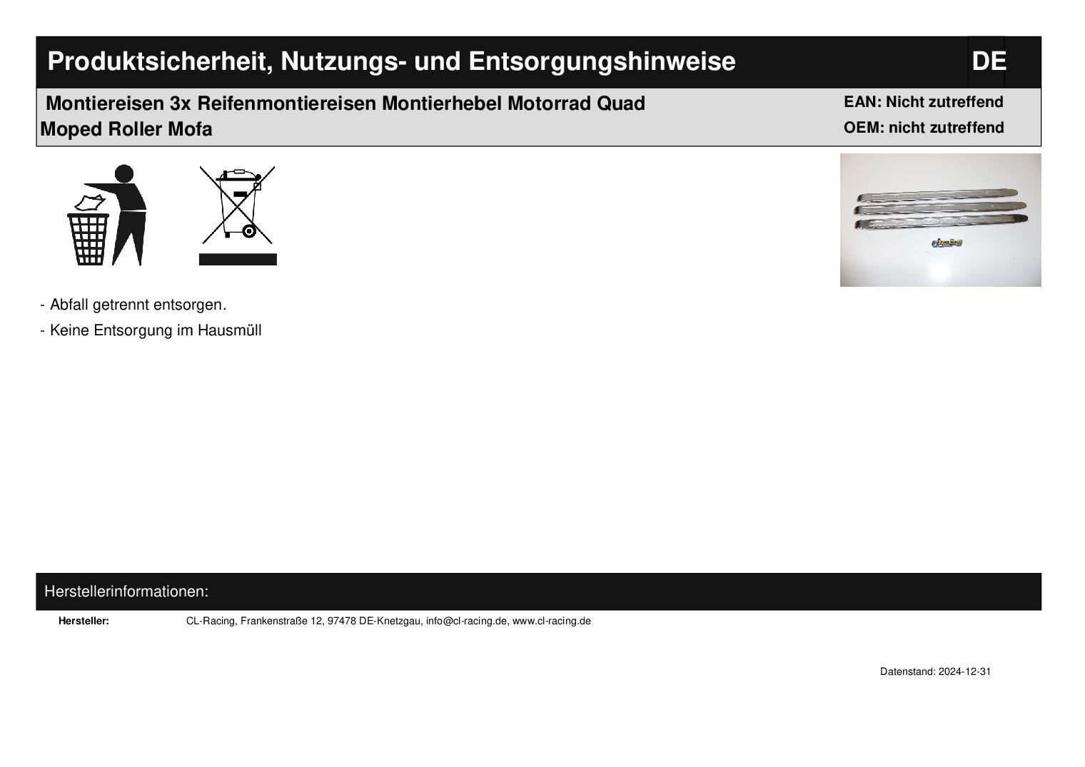 Titel: Montiereisen 3x Reifenmontiereisen Montierhebel Motorrad Quad Moped Roller Mofa