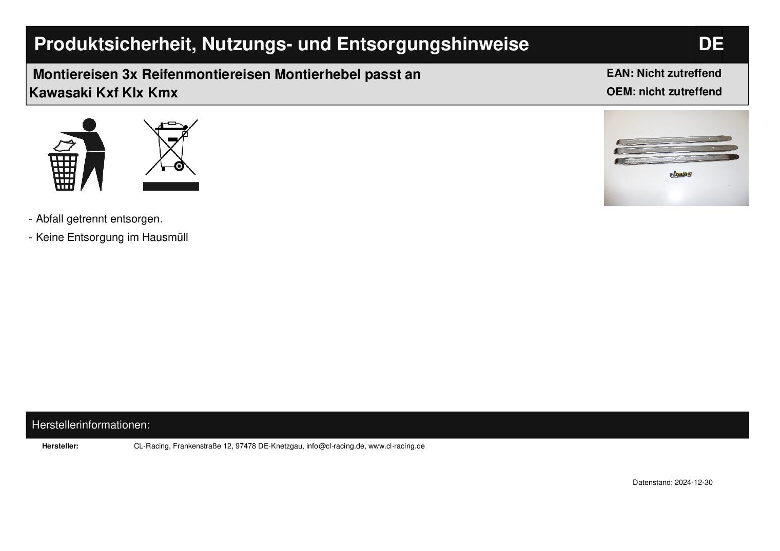 Titel: Montiereisen 3x Reifenmontiereisen Montierhebel passt an Kawasaki Kxf Klx Kmx