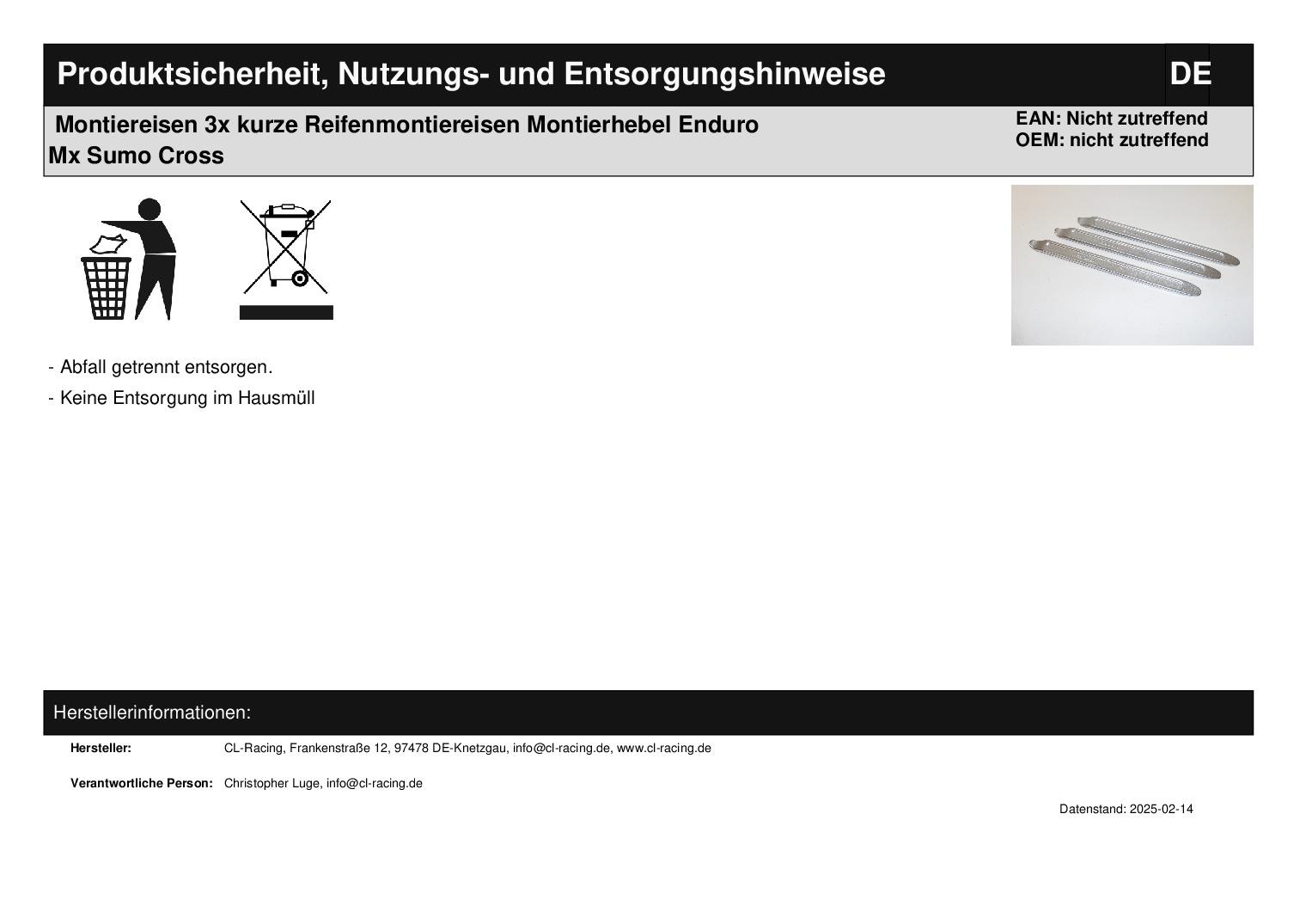 Titel: Montiereisen 3x kurze Reifenmontiereisen Montierhebel Enduro Mx Sumo Cross