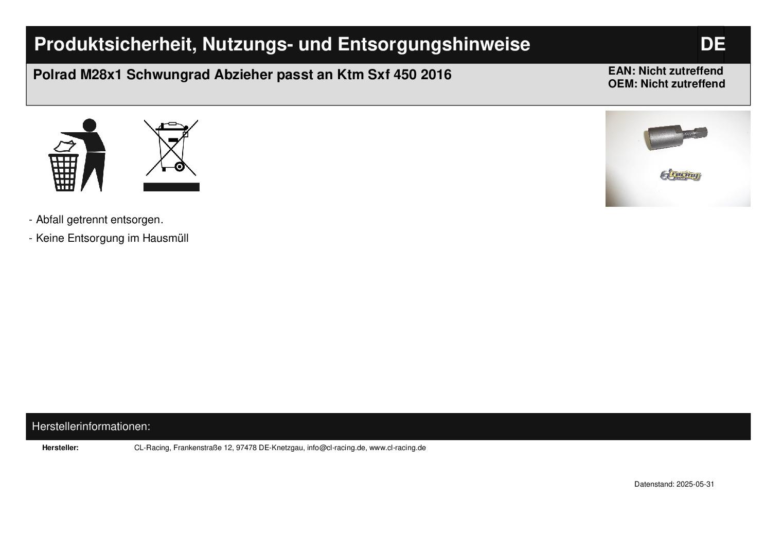 In dieser Auktion gibt es folgenden Artikel zu kaufen: Polradabzieher (siehe Foto) Gewinde: M28 x 1 Bitte Gewinde prüfen, da es unterschiedliche Ausführungen gibt!!! Lieferumfang: 1 Stück Artikelzustand: neu Es handelt sich hierbei um kein Originalteil Bei Unklarheiten oder Fragen bitte erst E-Mail schreiben.