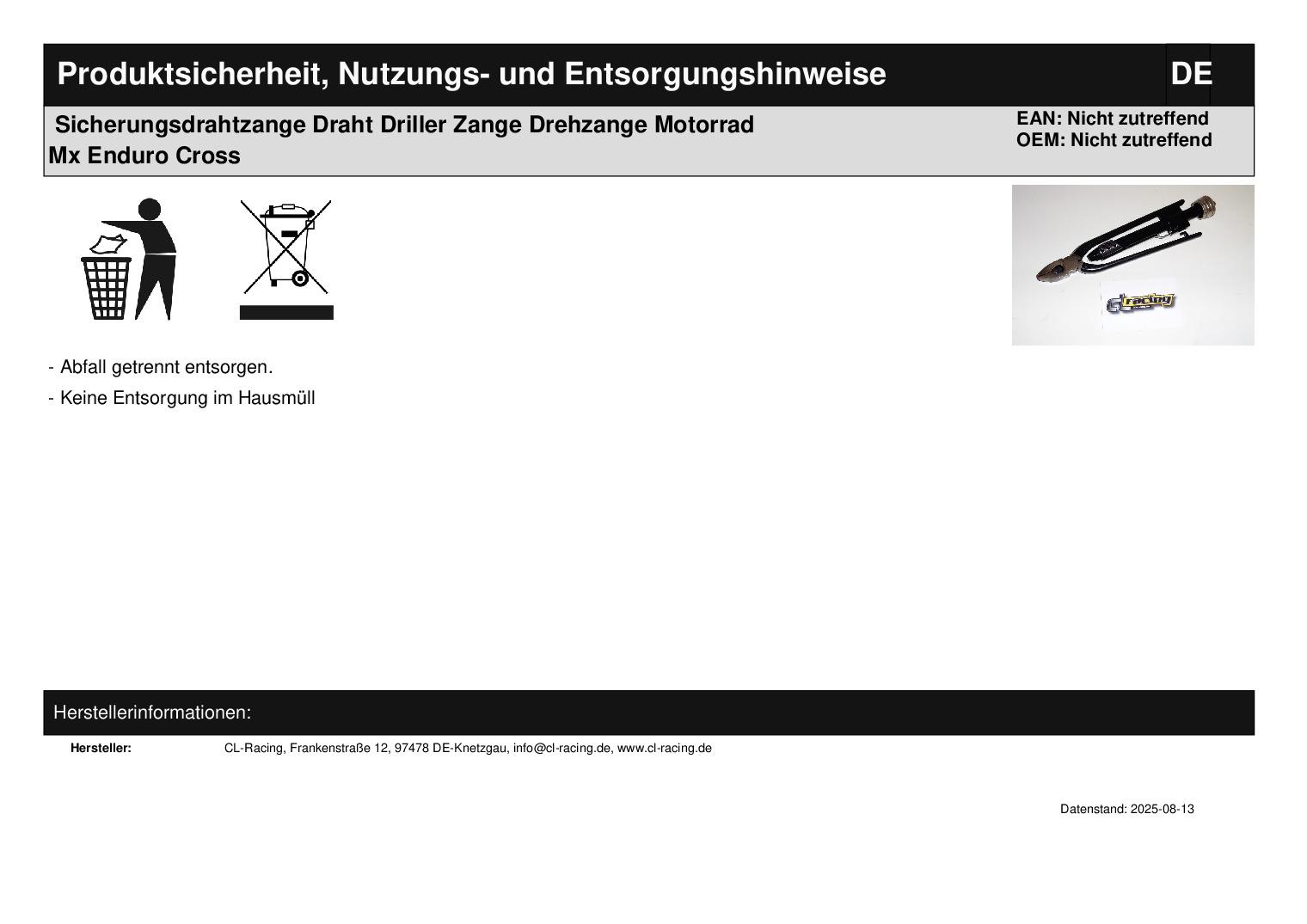 Titel: Sicherungsdrahtzange Draht Driller Zange Drehzange Motorrad Mx Enduro Cross