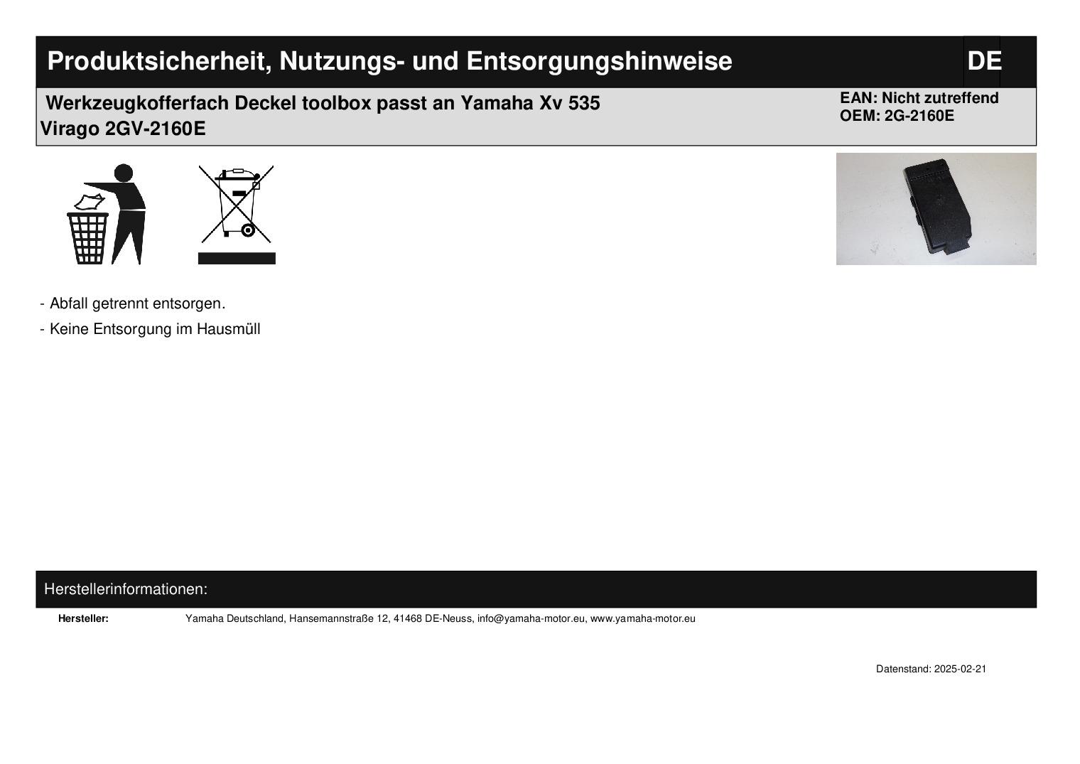 In dieser Auktion gibt es folgenden Artikel zu kaufen: Werkzeugkofferfach (siehe Foto) Modell: passend für Yamaha XV 535 Bj.: 89 - 03 Lieferumfang: siehe Foto Artikelzustand: neu aus Geschäftsauflösung, mit minimalen Lagerspuren; Zustand siehe Foto Bei Unklarheiten oder Fragen bitte erst E-Mail schreiben.