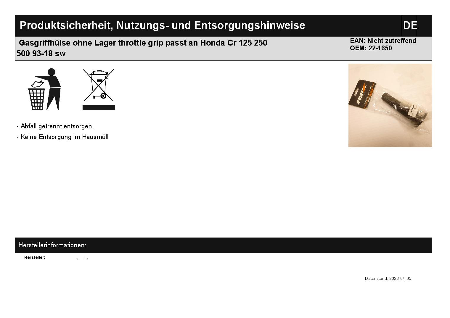 In dieser Auktion gibt es folgenden Artikel zu kaufen: Gasgriffhülse (ähnlich Foto) Modell: passend für Honda CR 125, 250, 500 Bj.: 1993 - 2018 Lieferumfang: siehe Foto Artikelzustand: neu Hierbei handelt es sich um kein Originalteil! Bei Unklarheiten oder Fragen bitte erst E-Mail schreiben.