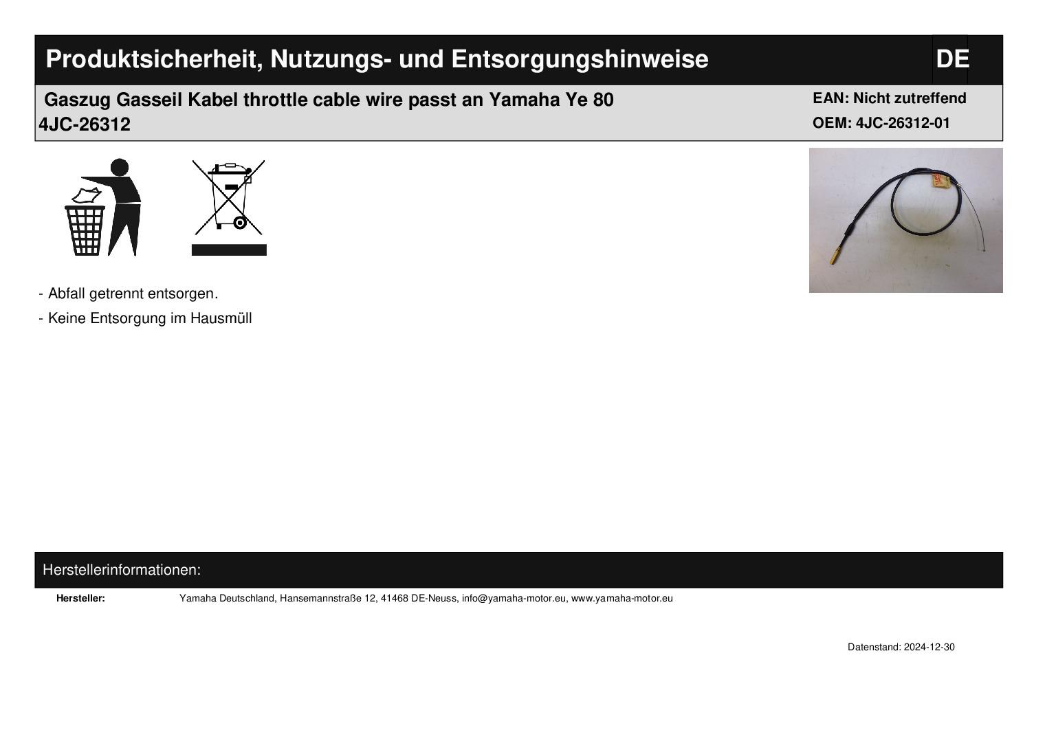 In dieser Auktion gibt es folgenden Artikel zu kaufen: Gaszug (siehe Foto) Modell: passend für Yamaha YE 80 Bj.: 95 Lieferumfang: siehe Foto Artikelzustand: neu aus Geschäftsauflösung, mit leichten Lagerspuren; Zustand siehe Foto Bei Unklarheiten oder Fragen bitte erst E-Mail schreiben.