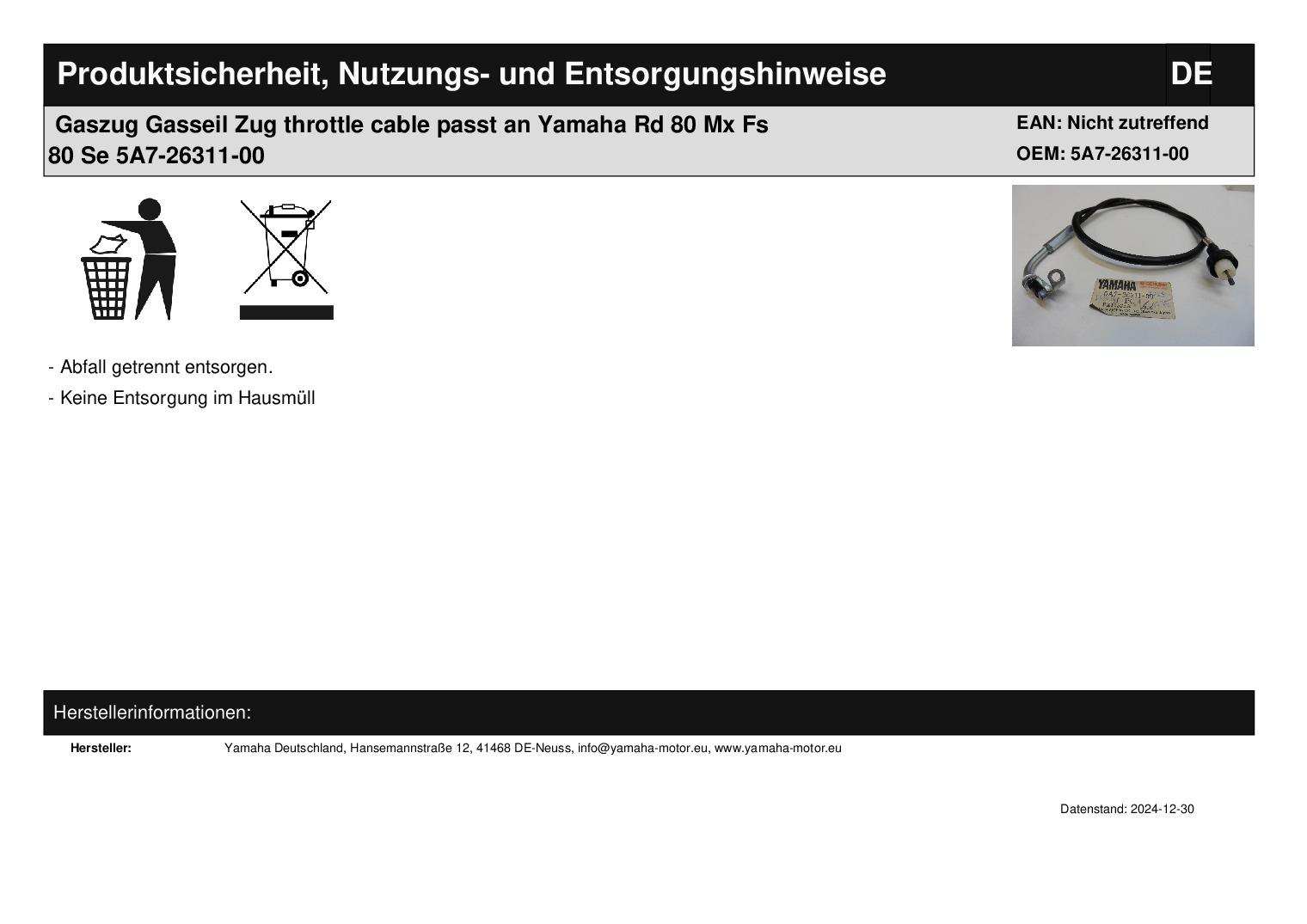 Titel: Gaszug Gasseil Zug throttle cable passt an Yamaha Rd 80 Mx Fs 80 Se 5A7-26311-00