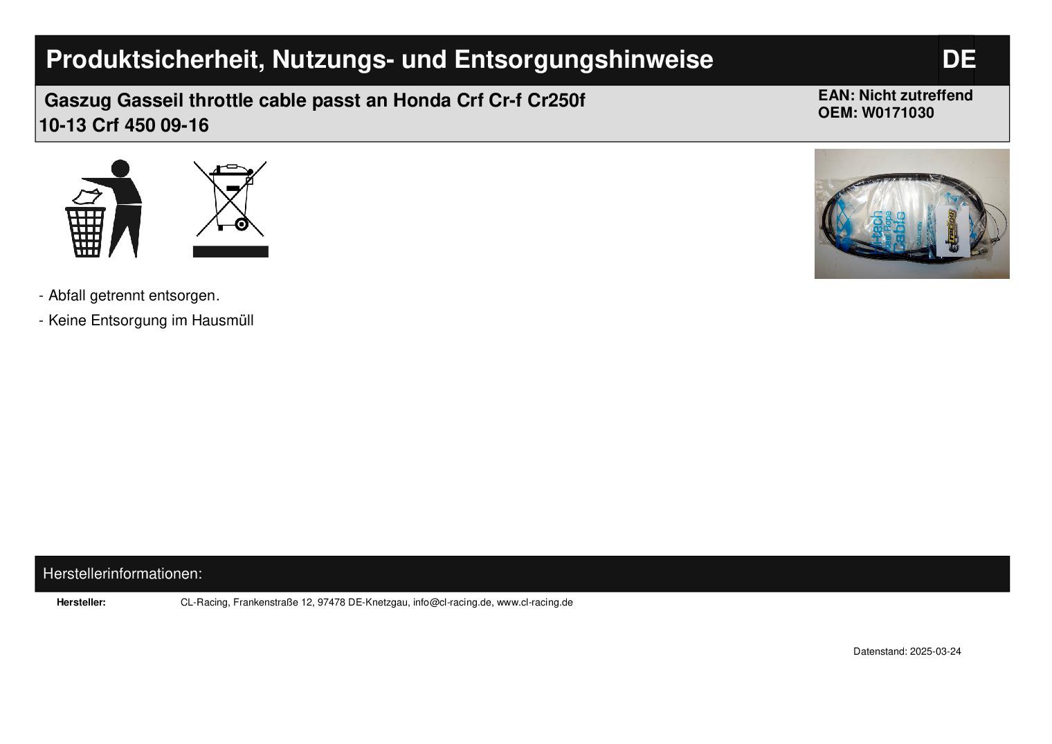 In dieser Auktion gibt es folgenden Artikel zu kaufen: Gaszug (siehe Foto) Modell: passend für Honda Crf 250 Bj.: 2010 - 2013 (4-Takt) Crf 450 Bj.: 2009 - 2016 (4-Takt) Lieferumfang: 1 Stück Artikelzustand: neu Hierbei handelt es sich um kein Originalteil Bei Unklarheiten oder Fragen bitte erst E-Mail schreiben.