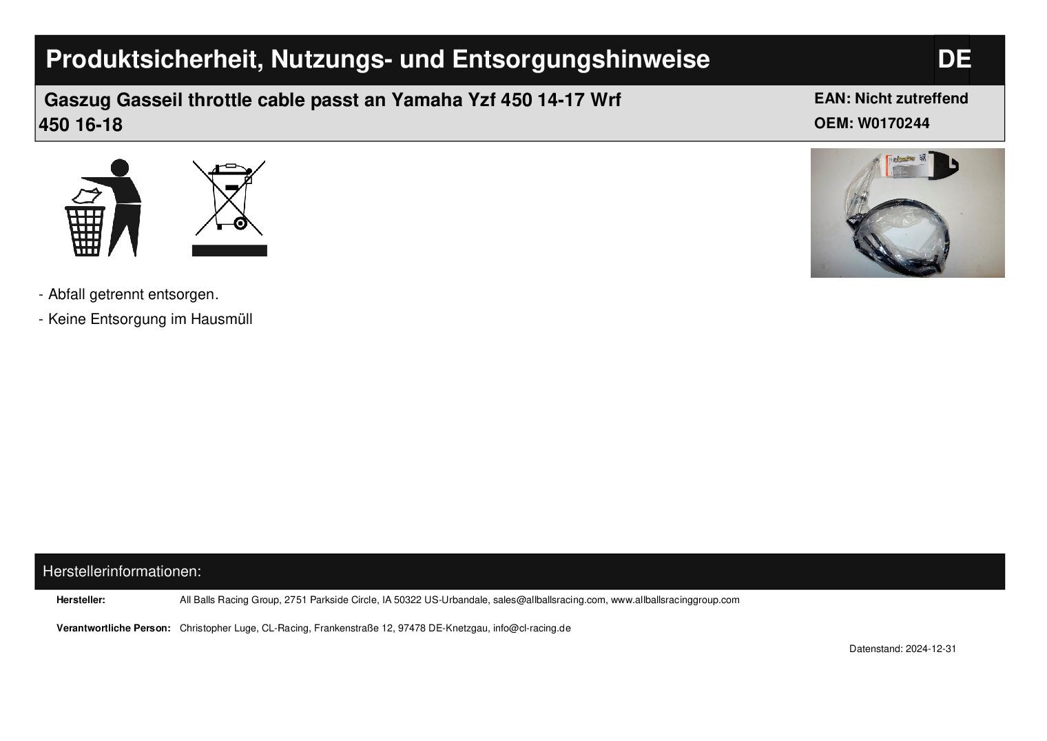 In dieser Auktion gibt es folgenden Artikel zu kaufen: Gaszug (siehe Foto) Modell: passend für Yamaha Yzf 450 Bj.: 2014 - 2017 (4-Takt) Wrf 450 Bj.: 2016 - 2018 (4-Takt) Yzf 450X Bj.: 2016 - 2018 (4-Takt) Lieferumfang: 1 Stück Artikelzustand: neu Hierbei handelt es sich um kein Originalteil Bei Unklarheiten oder Fragen bitte erst E-Mail schreiben.