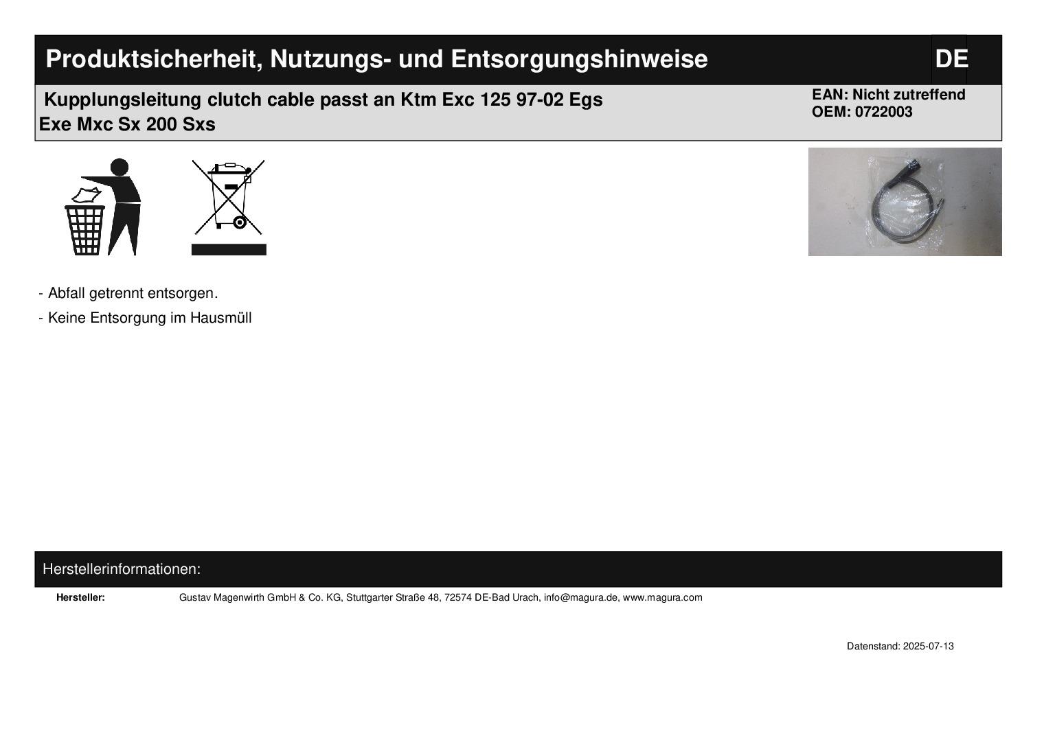 In dieser Auktion gibt es folgenden Artikel zu kaufen: Kupplungsleitung (siehe Foto) Modell: passend für Ktm EGS 125 Bj.: 97 - 99 EGS 200 Bj.: 98 - 99 EXC 125 Bj.: 97 - 02 EXC 200 Bj.: 98 - 02 EXE 200 Bj.: 00 - 01 MXC 200 Bj.: 98 - 02 SX 125 Bj.: 97 - 02 SX 200 Bj.: 98 - 02 SXS 125 Bj.: 00 - 02 Lieferumfang: siehe Foto Artikelzustand: neu aus Geschäftsauslösung, mit leichten Lagerspuren; Zustand siehe Foto Es handelt sich hierbei um kein Originalteil Bei Unklarheiten oder Fragen bitte erst E-Mail schreiben.