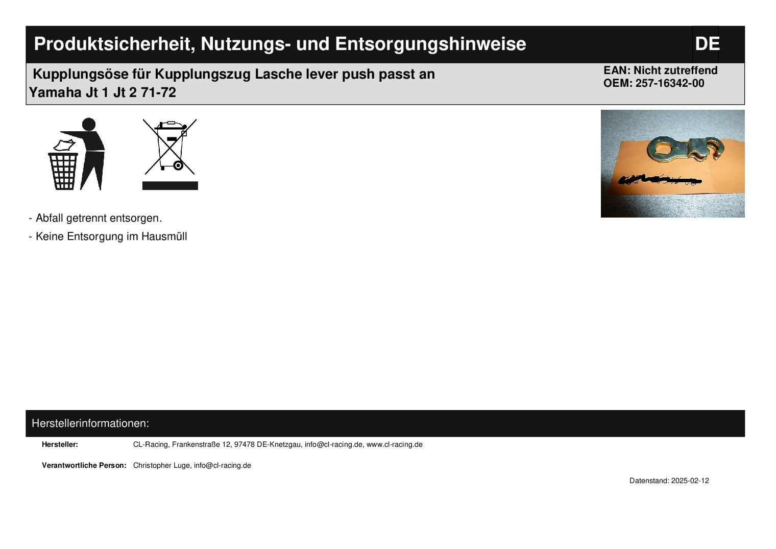 In dieser Auktion gibt es folgenden Artikel zu kaufen: Lasche zum Einhängen des Kupplungszuges (siehe Foto) Modell: passend für Yamaha JT1, JT2 Bj.: 1971 - 1972 Lieferumfang: 1 Stück Artikelzustand: neu aus Geschäftsauflösung, mit minimalen Lagerspuren; Zustand siehe Foto Bei Unklarheiten oder Fragen bitte erst E-Mail schreiben.