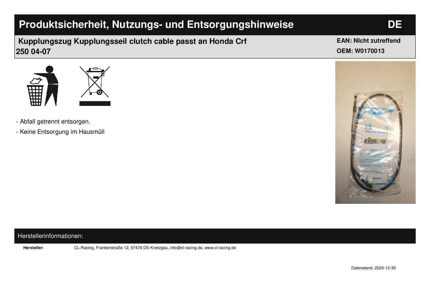 In dieser Auktion gibt es folgenden Artikel zu kaufen: Kupplungszug (siehe Foto) Modell: passend für Honda CRF 450 Bj.: 04 - 07 Lieferumfang: 1 Stück Artikelzustand: neu Hierbei handelt es sich um kein Originalteil Bei Unklarheiten oder Fragen bitte erst E-Mail schreiben.