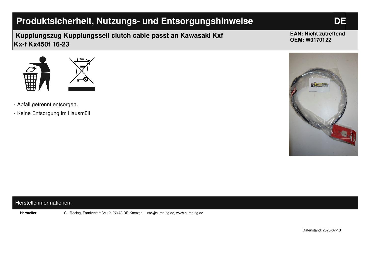 In dieser Auktion gibt es folgenden Artikel zu kaufen: Kupplungszug (siehe Foto) Modell: passend für Kawasaki KXF 450 Bj.: 16 - 23 Lieferumfang: 1 Stück Artikelzustand: neu Hierbei handelt es sich um kein Originalteil Bei Unklarheiten oder Fragen bitte erst E-Mail schreiben.