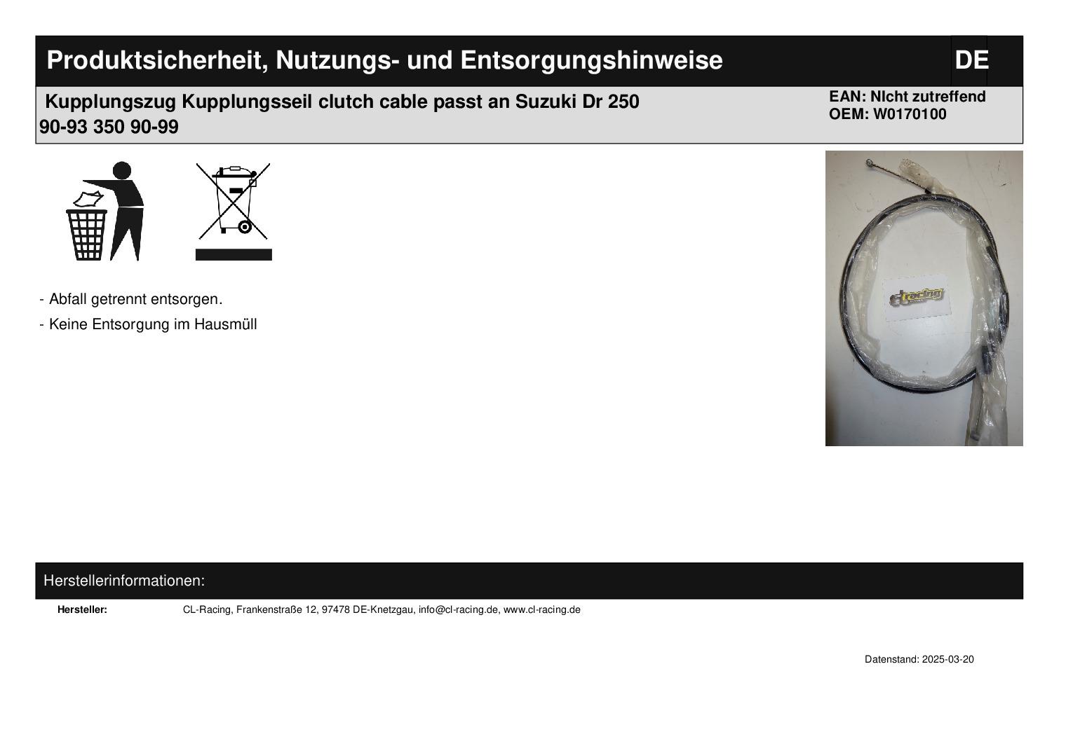 • Kupplungszug Kupplungsseil clutch cable passt an Suzuki Dr 250 90-93 350 90-99