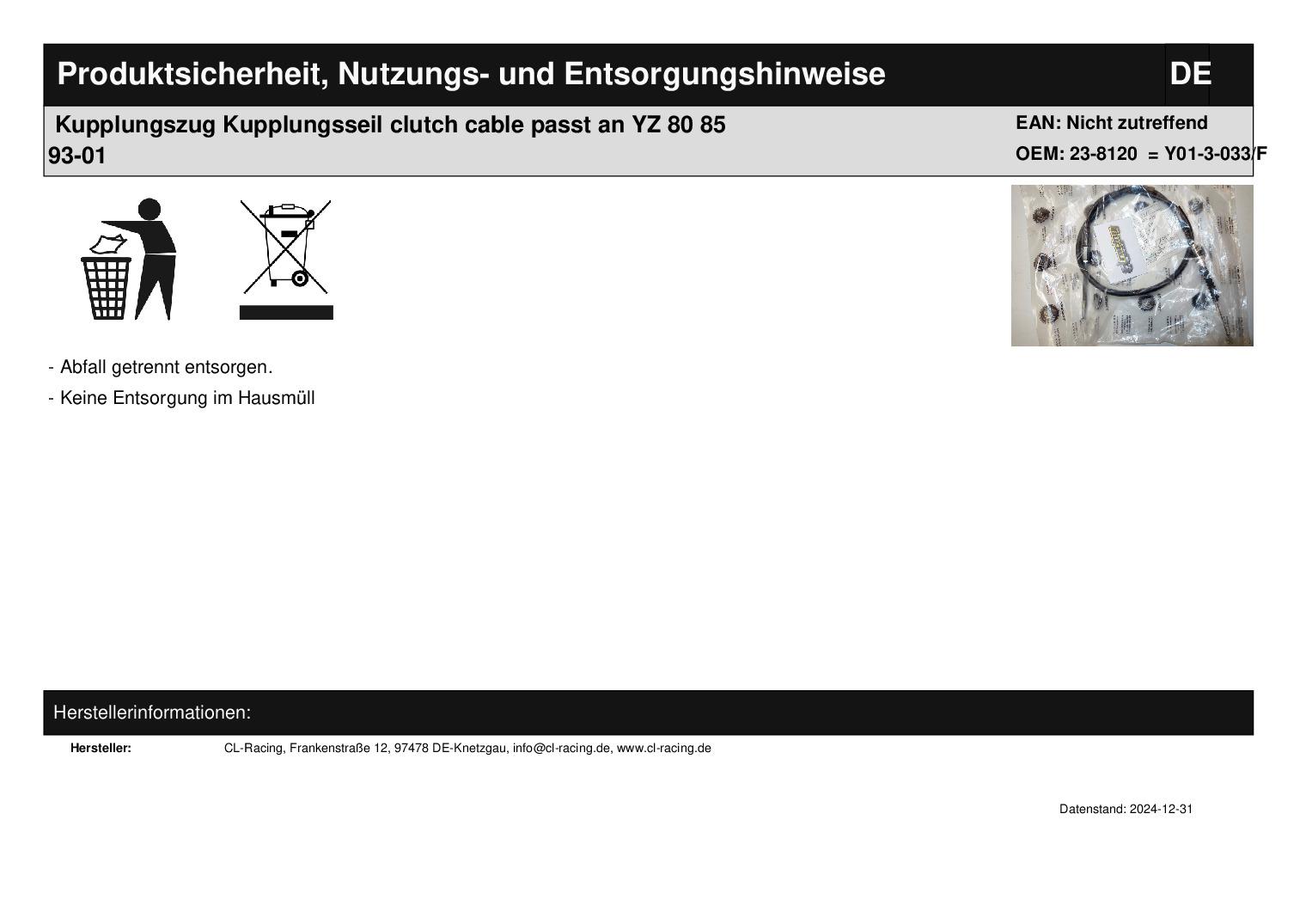 In dieser Auktion gibt es folgenden Artikel zu kaufen: Kupplungszug (siehe Foto) Modell: passend für Yamaha Yz 80 Bj.: 1993 - 2001 (2-Takt) Yz 85 Bj.: 1993 - 2001 (2-Takt) Lieferumfang: siehe Foto Artikelzustand: neu Hierbei handelt es sich um kein Originalteil! Bei Unklarheiten oder Fragen bitte erst E-Mail schreiben.