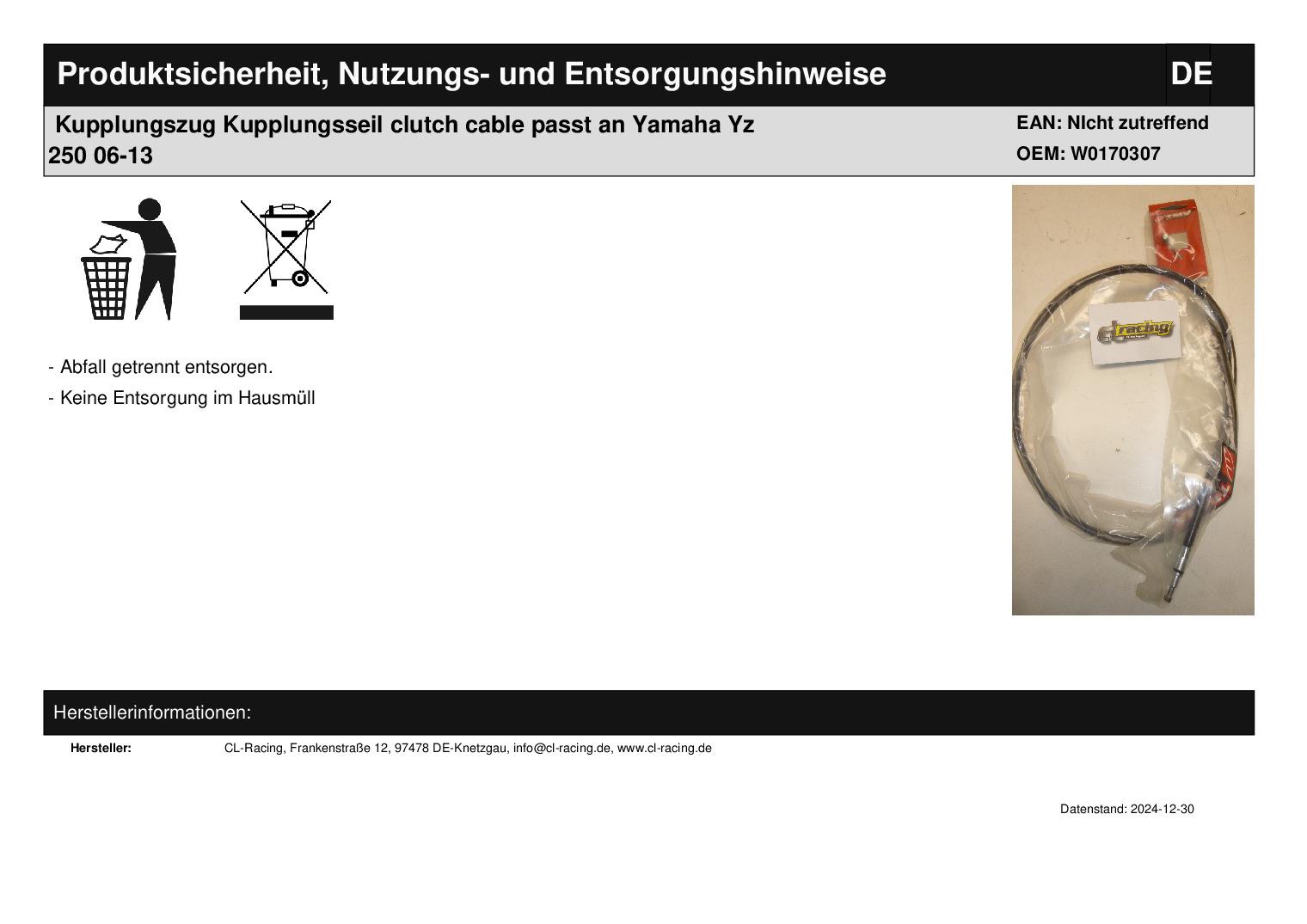In dieser Auktion gibt es folgenden Artikel zu kaufen: Kupplungszug (siehe Foto) Modell: passend für Yamaha YZ 250 Bj.: 06 - 13 Lieferumfang: 1 Stück Artikelzustand: neu Hierbei handelt es sich um kein Originalteil Bei Unklarheiten oder Fragen bitte erst E-Mail schreiben.