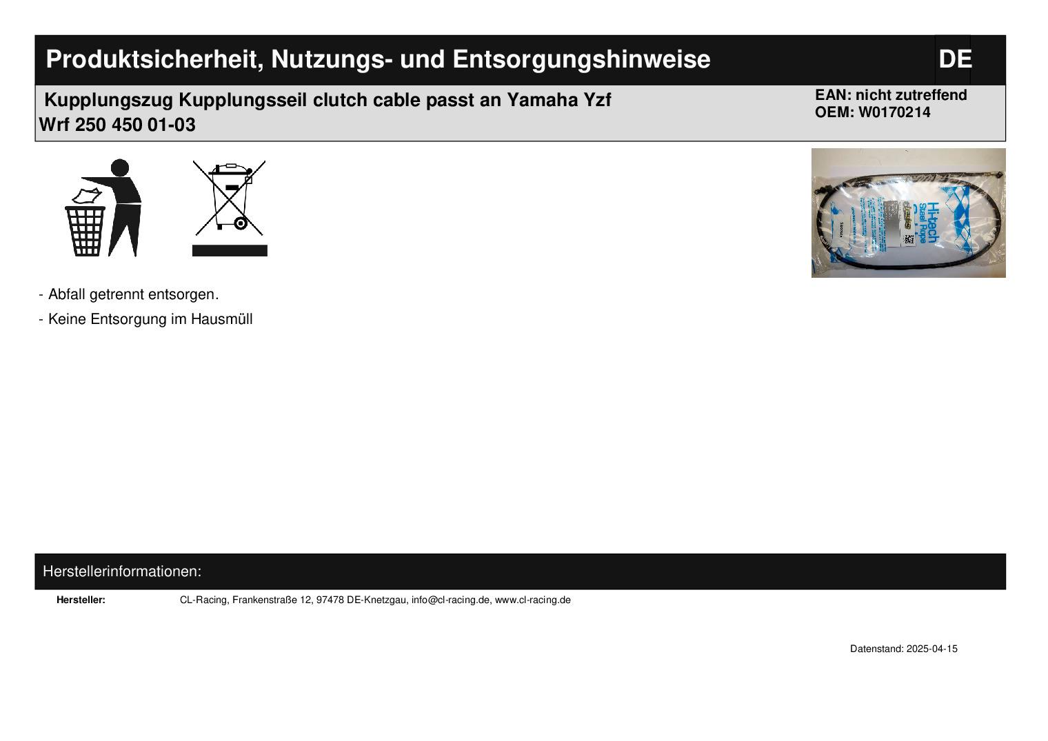 Titel: Kupplungszug Kupplungsseil clutch cable passt an Yamaha Yzf Wrf 250 450 01-03