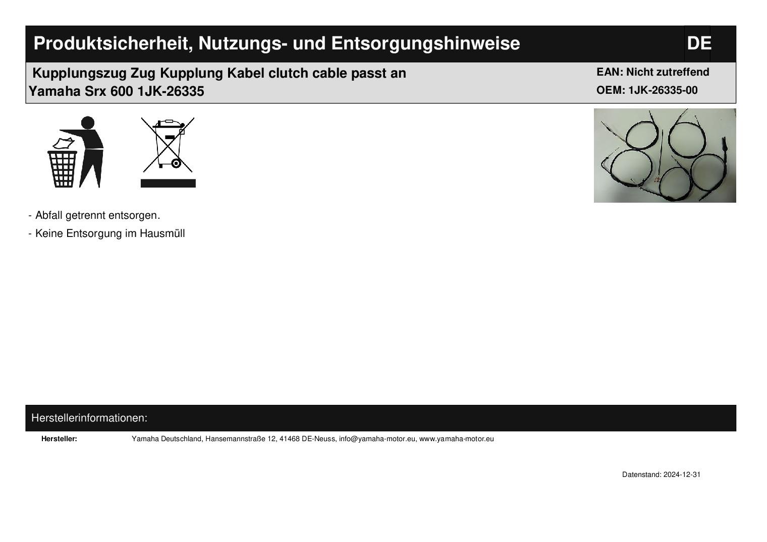Titel: Kupplungszug Zug Kupplung Kabel clutch cable passt an Yamaha Srx 600 1JK-26335