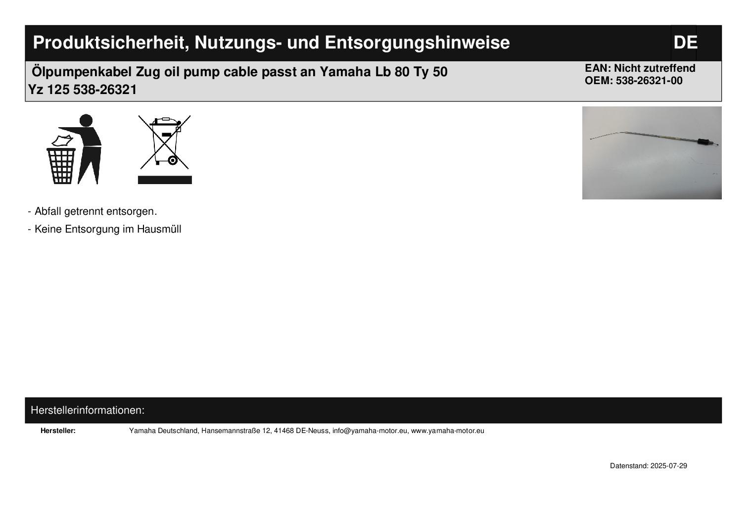 In dieser Auktion gibt es folgenden Artikel zu kaufen: Ölpumpenzug (siehe Foto) Modell: passend für Yamaha LB 80 Bj.: 78 TY 50 Bj.: 77 YZ 125 Bj.: 78 Lieferumfang: siehe Foto Artikelzustand: neu aus Geschäftsauflösung, mit leichten Lagerspuren; Zustand siehe Foto Bei Unklarheiten oder Fragen bitte erst E-Mail schreiben.