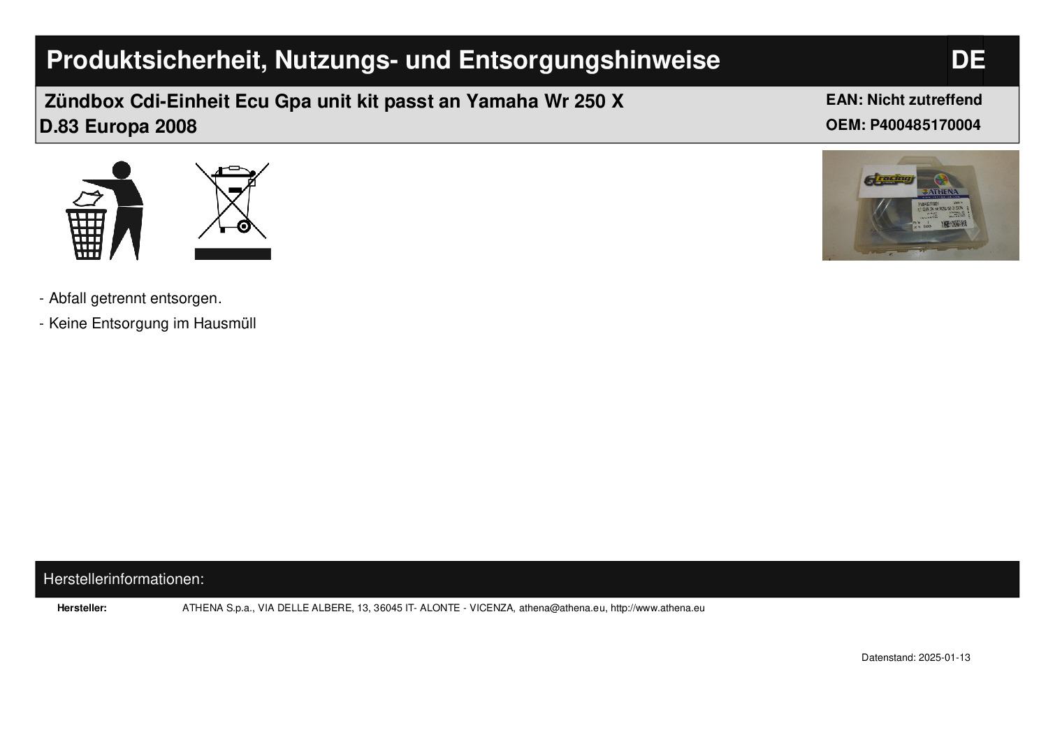 In dieser Auktion gibt es folgenden Artikel zu kaufen: Zündbox (siehe Foto) Modell: passend für Yamaha WR 250 X D. 83 Europa Bj.: 08 Lieferumfang: siehe Foto Artikelzustand: neu Bei Unklarheiten oder Fragen bitte erst E-Mail schreiben.