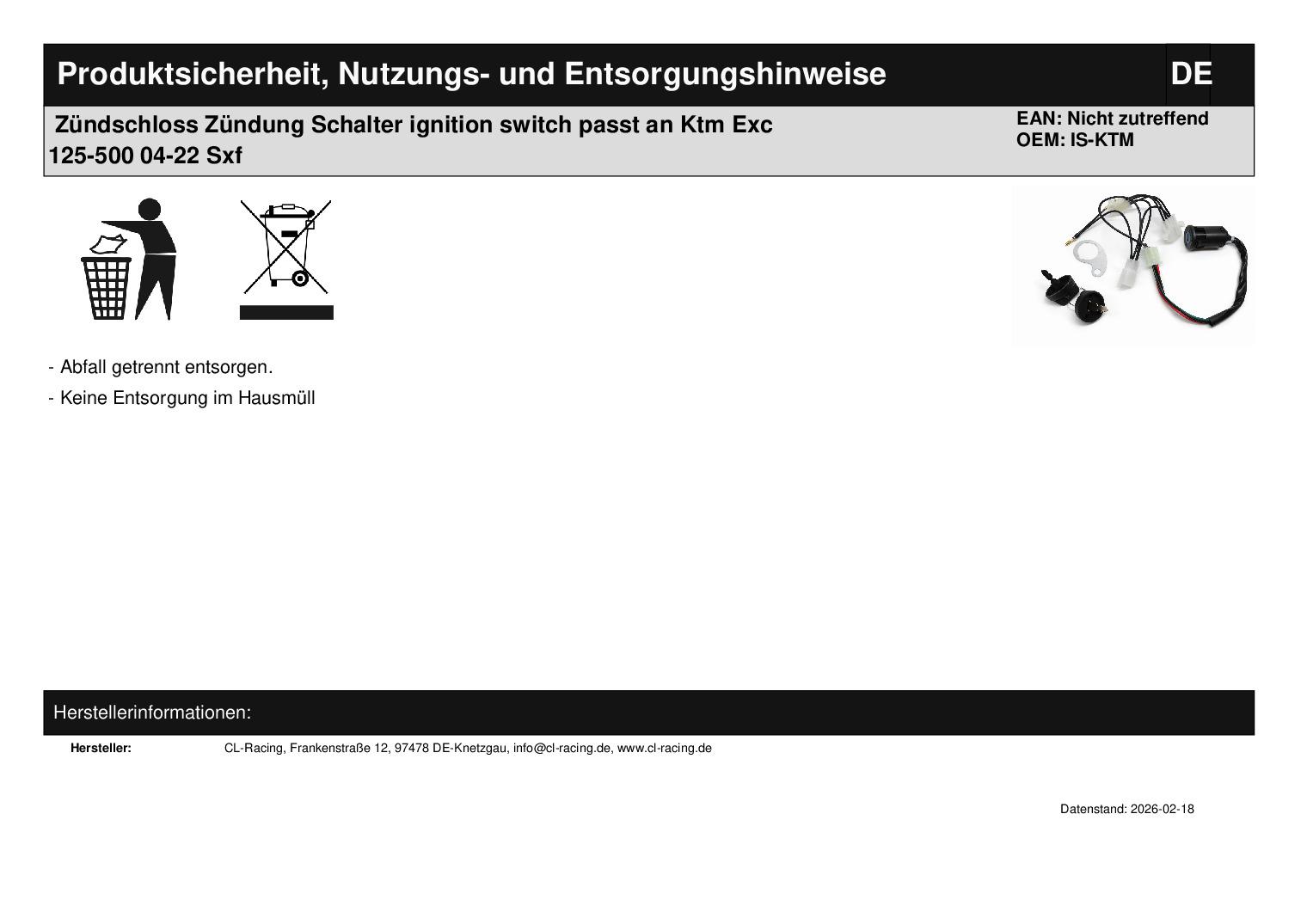 In dieser Auktion gibt es folgenden Artikel zu kaufen: Zündschloss mit Halterung (siehe Foto) Modell: passend für Ktm EXC, EXC-F alle Modelle Bj.: 04 - 22 SXF alle Modelle Bj.: 07 - 22 passend für Husaberg alle Modelle Bj.: 13 - 14 passend für Husqvarna FE, TE alle Modelle Bj.: 14 - 22 passend für GasGas EX-F alle Modelle Bj.: 22 Lieferumfang: 1 Stück Artikelzustand: neu Bei Unklarheiten oder Fragen bitte erst E-Mail schreiben.