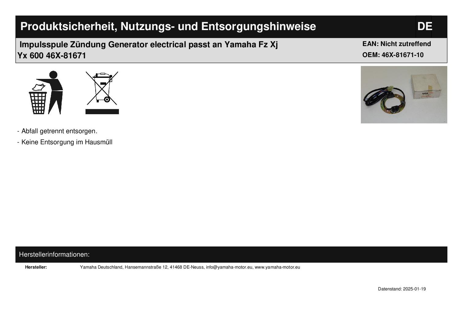 Titel: Impulsspule Zündung Generator electrical passt an Yamaha Fz Xj Yx 600 46X-81671