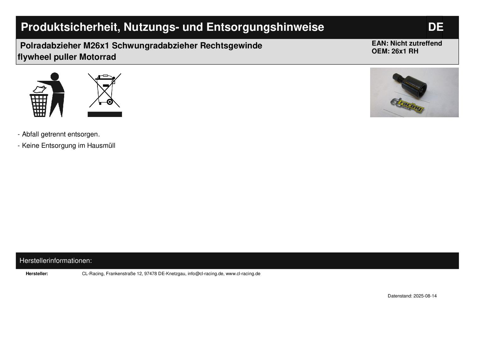 In dieser Auktion gibt es folgenden Artikel zu kaufen: Abzieher (siehe Foto) Gewinde: M26 x 1 RH (Rechtsgewinde) Bitte Gewinde prüfen, das es unterschiedliche Ausführungen gibt!!! Lieferumfang: siehe Foto Artikelzustand: neu Bei Unklarheiten oder Fragen bitte erst E-Mail schreiben.