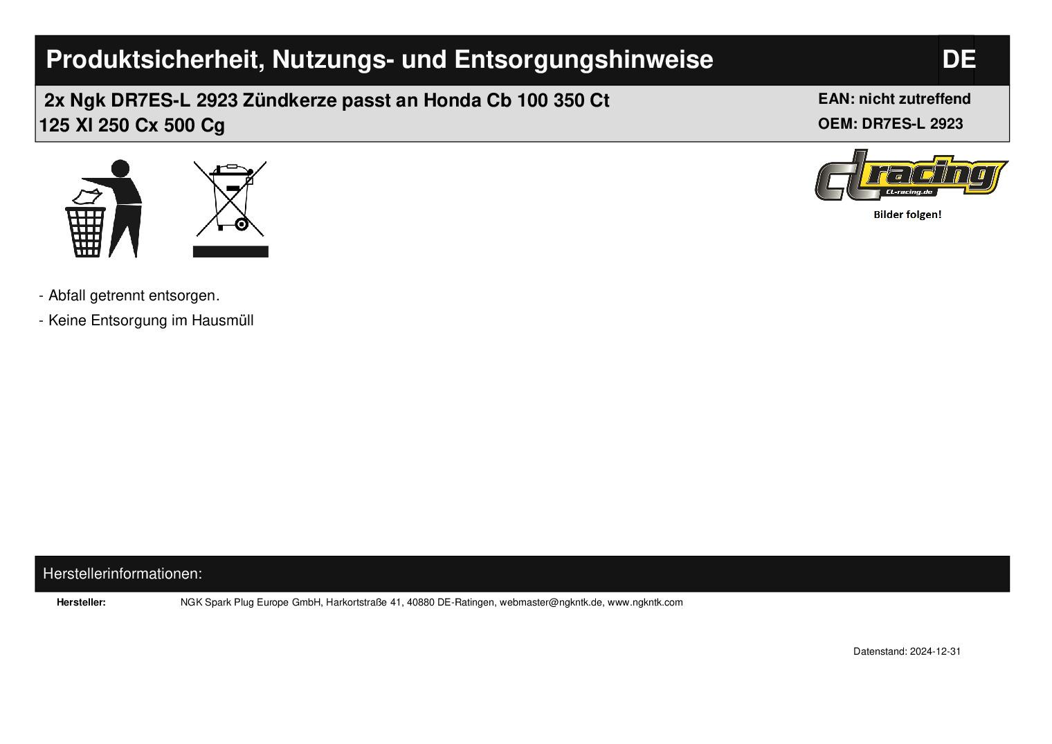 In dieser Auktion gibt es folgenden Artikel zu kaufen: Zündkerzen (ähnlich Foto) Modell: passend für Honda CB 100 N Bj.: 78 - 86 CB 125 RS-D/E Bj.: 83 - 86 CB 250 RS Bj.: 80 - 83 CB 250 T Dream Bj.: 77 - 81 CB 350 SG Bj.: 86 - 88 CG 125 C Bj.: 76 - 96 CL 250 S-C Bj.: 82 - 84 CT 125 C Bj.: 82 - 85 CX 500 Bj.: 78 - 84 GL 500 Silvering Bj.: 82 - 84 TLR 200 R-E/F Bj.: 83 - 87 TLR 250 F Bj.: unbekannt XL 125 Bj.: 75 - 87 XL 185 S Bj.: 79 - 84 XL 250 R-C Bj.: 82 - 84 XL 250 S Bj.: 73 - 82 XL 500 Bj.: 79 - 84 XR 200 Bj.: 80 - 83 Typ: DR7ES-L 2923 Bitte vor dem Kauf Typ vergleichen! Lieferumfang: 2 Stück Artikelzustand: neu Bei Unklarheiten oder Fragen bitte erst E-Mail schreiben.