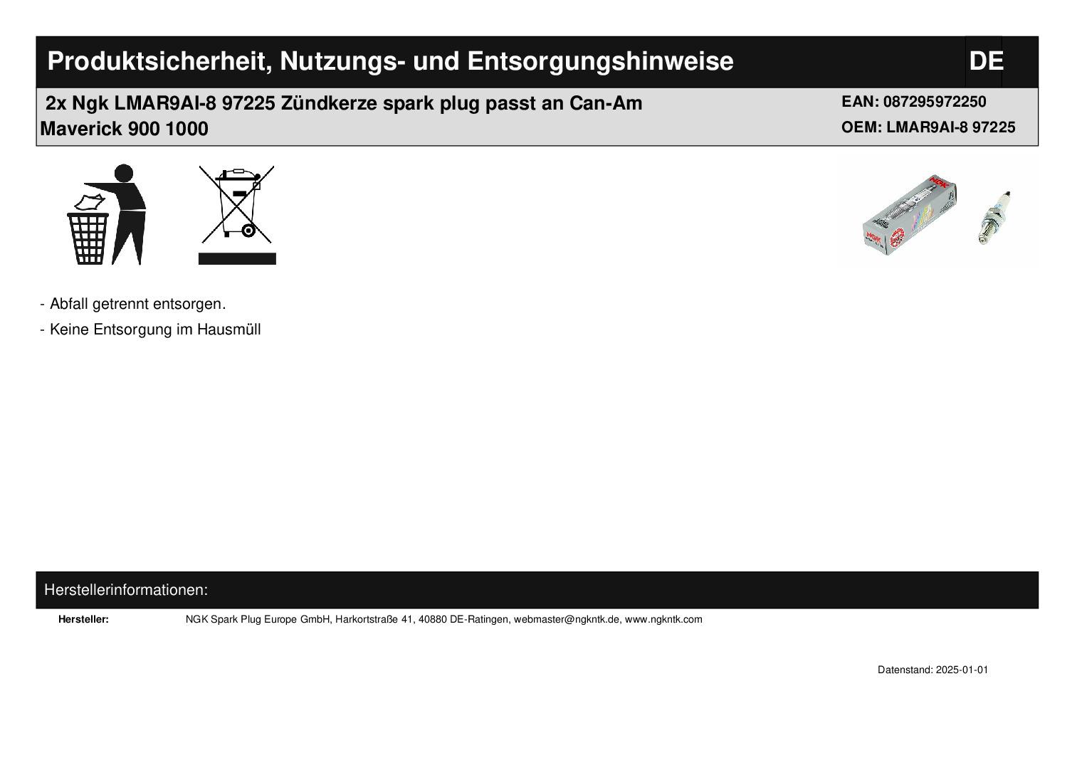 In dieser Auktion gibt es folgenden Artikel zu kaufen: Zündkerzen (ähnlich Foto) Modell: passend für Can-Am Maverick 900 X3 XRC Turbo R International DP S Bj.: 18 - 19 Maverick 900 X3 XDS Turbo R International DP S Bj.: 18 - 19 Maverick 900 XMR Turbo R International DP S Bj.: 19 Maverick 900 X3 XRS Turbo R International DP S Bj.: 18 - 19 Maverick 900 X3 XRS Turbo R Max International DP S Bj.: 18 - 19 passend für GasGas MC 250 F 4T Bj.: 21 - 24 MC 450 F Bj.: 21 - 23 MC 450 F Factory Edition Bj.: 23 - 24 MC 450 F Troy Lee Bj.: 22 RX 450 F Replica Bj.: 23 - 24 passend für Husaberg FE 350 ie Enduro Bj.: 13 - 14 passend für Husqvarna FC 250 Bj.: 14 - 22 FC 350 Bj.: 14 - 22 FC 450 Bj.: 16 - 22 FC 450 Rockstar Edition Bj.: 18 - 22 FE 250 Bj.: 17 - 22 FE 350 Bj.: 14 - 16 FS 450 Bj.: 16 - 22 passend für KTM EXC-F 350 ie4T Bj.: 12 - 16 Rally 450 Factory Replica Bj.: 19 - 24 RC 250 R Bj.: 13 - 14 SMR 450 ie Supermoto Bj.: 21 - 22 SX 250 Bj.: 22 SXF 250 ie4T Bj.: 13 - 22 SXF 350 ie4T Bj.: 11 - 22 SXF 450 ie Bj.: 16 - 22 passend für Triumph TF 250 X Bj.: 24 Typ: LMAR9AI-8 Bitte vor dem Kauf Typ vergleichen! Lieferumfang: 2 Stück Artikelzustand: neu Bei Unklarheiten oder Fragen bitte erst E-Mail schreiben.
