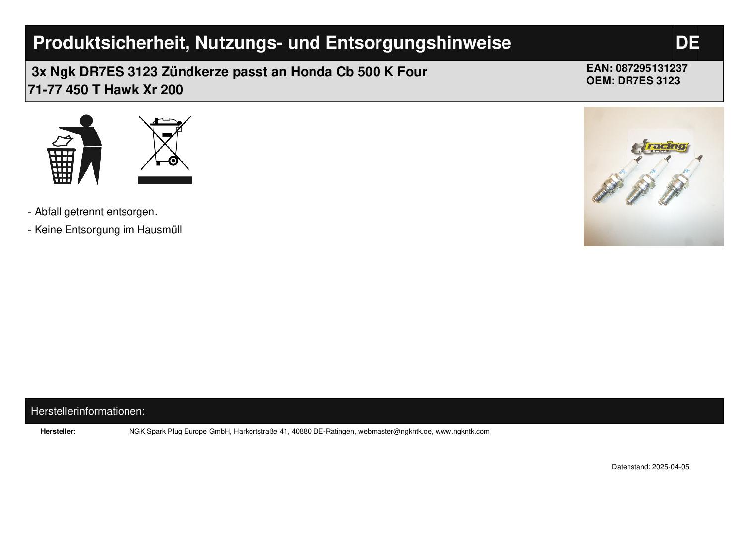 In dieser Auktion gibt es folgenden Artikel zu kaufen: Zündkerzen (ähnlich Foto) Modell: passend für Honda CB 450 T Hawk Bj.: 82 CB 500 K Four Bj.: 71 - 77 CB 550 K Four Bj.: 77 - 78 CB 550 F Supersport Bj.: 76 - 78 XR 200 Bj.: 82 - 84 Typ: DR7ES 3123 Bitte vor dem Kauf Typ vergleichen! Lieferumfang: 3 Stück Artikelzustand: neu Bei Unklarheiten oder Fragen bitte erst E-Mail schreiben.
