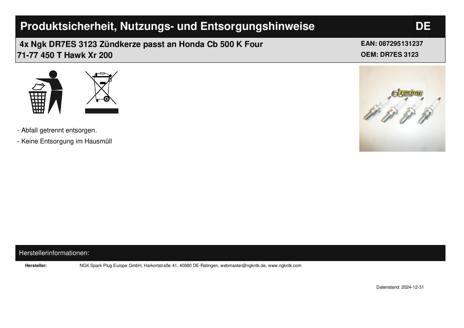In dieser Auktion gibt es folgenden Artikel zu kaufen: Zündkerzen (ähnlich Foto) Modell: passend für Honda CB 450 T Hawk Bj.: 82 CB 500 K Four Bj.: 71 - 77 CB 550 K Four Bj.: 77 - 78 CB 550 F Supersport Bj.: 76 - 78 XR 200 Bj.: 82 - 84 Typ: DR7ES 3123 Bitte vor dem Kauf Typ vergleichen! Lieferumfang: 4 Stück Artikelzustand: neu Bei Unklarheiten oder Fragen bitte erst E-Mail schreiben.
