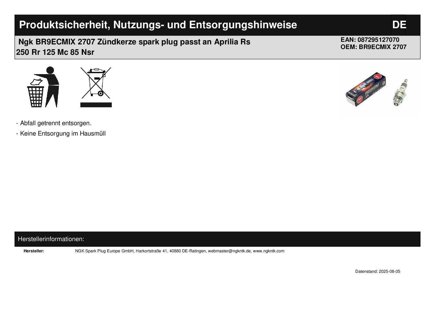 In dieser Auktion gibt es folgenden Artikel zu kaufen: Zündkerze (ähnlich Foto) Modell: passend für Aprilia RS 250 Bj.: 1995 - 2002 passend für Beta RR 125 Bj.: 2018 - 2021 passend für GasGas MC 85 Bj.: 2021 MC 125 Bj.: 2021 passend für Honda NSR 250 Bj.: 1987 - 1999 passend für Husaberg TE 125 Bj.: 2012 - 2014 passend für Husqvarna TC 85 Bj.: 2014 - 2021 TC 125 Bj.: 2014 - 2021 TE 125 Bj.: 2014 - 2016 TX 125 Bj.: 2017 - 2019 passend für KTM EXC 125 Bj.: 2008 - 2016 SX 85 Bj.: 2008 - 2021 SX 125 Bj.: 2008 - 2021 SX 150 Bj.: 2009 - 2021 XC-W 125 Bj.: 2017 - 2019 XC-W 150 Bj.: 2017 - 2019 passend für Sherco SC 125 Bj.: 2019 - 2020 SE-R 125 Bj.: 2018 - 2021 ST 125 Bj.: 2018 passend für Suzuki RG 125 Bj.: 1986 - 1996 RGV 250 Bj.: 1991 - 1992 passend für TM Racing MX 85 Bj.: 2014 - 2020 MX 100 Bj.: 2015 - 2018 SMX 85 Bj.: 2017 - 2020 passend für Yamaha TZ 125 Bj.: 1999 TZR 125 Bj.: 1997 - 1999 YZ 65 Bj.: 2018 - 2021 Typ: LMAR9AI-8 Bitte vor dem Kauf Typ vergleichen! Lieferumfang: 1 Stück Artikelzustand: neu Bei Unklarheiten oder Fragen bitte erst E-Mail schreiben.
