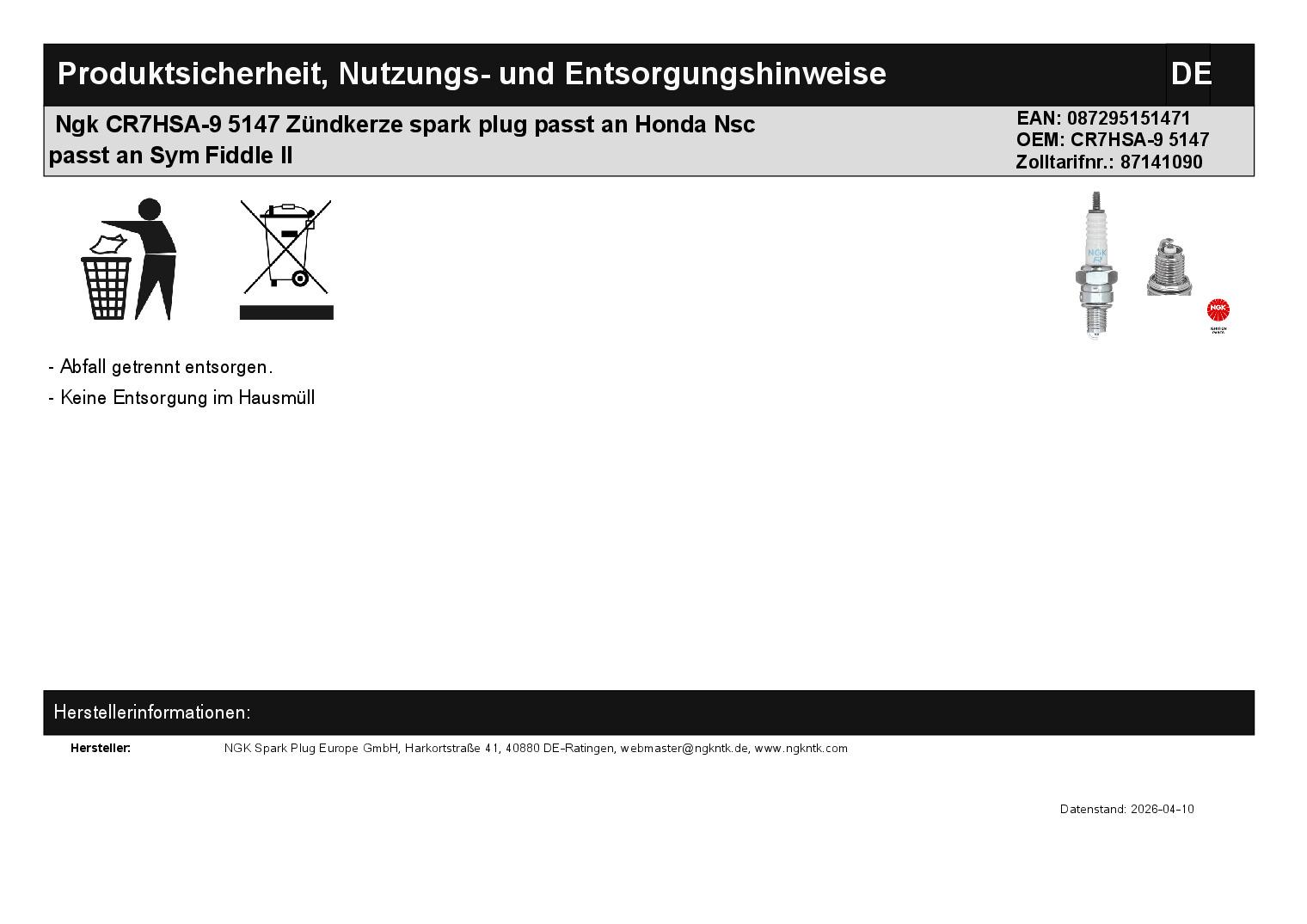 In dieser Auktion gibt es folgenden Artikel zu kaufen: Zündkerze (siehe Foto) Modell: passend für Honda NSC 50 R Bj.: 2013 - 2017 NSC 50 WH Bj.: 2012 - 2019 passend für SYM Allo 125 Bj.: 2011 - 2016 Fiddle II 50 Bj.: 2007 - 2015 Fiddle II 125 Bj.: 2007 - 2014 Fiddle III 125 Bj.: 2014 - 2020 Fiddle III 200 Bj.: 2017 - 2019 Jet14 125 Bj.: 2017 - 2020 Jet14 200 Bj.: 2019 - 2020 Jet4 50 Bj.: 2010 - 2020 Jet4 125 Bj.: 2010 - 2020 JetV 125 Bj.: 2011 - 2015 Orbit 25 Bj.: 2007 - 2009 Orbit 125 Bj.: 2008 - 2010 Orbit II 25 Bj.: 2009 - 2012 Orbit II 50 Bj.: 2009 - 2017 Orbit II 125 Bj.: 2011 - 2019 Super Duke 125 Bj.: 1996 - 1998 Symphony 50 SR Bj.: 2011 - 2016 Symphony 125 Bj.: 2009 - 2011 Symphony 125 SR Bj.: 2011 - 2016 Symphony 125 ST Bj.: 2015 - 2020 Symphony 125 SR Bj.: 2017 - 2020 Symply 50 Bj.: 2009 - 2017 Symply II 50 Bj.: 2012 - 2016 X-Pro 125 Bj.: 2013 - 2016 Typ: CR7HSA-9 Bitte vor dem Kauf Typ vergleichen! Lieferumfang: 1 Stück Artikelzustand: neu Bei Unklarheiten oder Fragen bitte erst E-Mail schreiben.