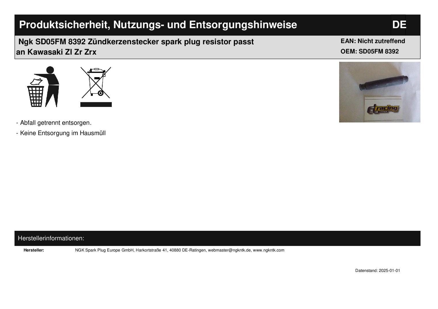 In dieser Auktion gibt es folgenden Artikel zu kaufen: Zündkerzenstecker (siehe Foto) Modell: passend für Kawasaki ZL 1000 Bj.: 1987 - 1988 ZR 1100 Bj.: 1992 - 1997 ZRX 1100 Bj.: 1997 - 2000 ZX-10 Bj.: 1988 - 1990 Typ: SD05FM 8392