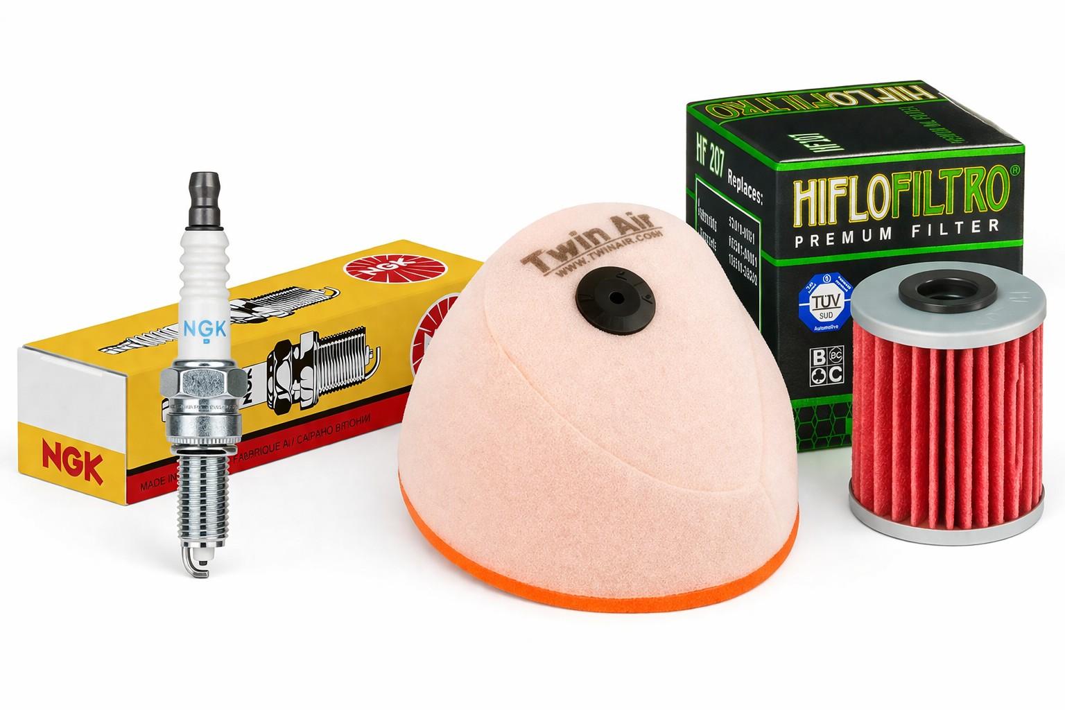 In dieser Auktion gibt es folgenden Artikel zu kaufen: Wartungskit (ähnlich Foto) Modell: passend für Kawasaki KXF 250 Bj.: 11 - 16 Lieferumfang: 1 x Ölfilter Hiflo HF207 1 x Luftfilter TwinAir 151119 1 x Zündkerze NGK CPR8EB-9 Artikelzustand: neu Es handelt sich hierbei um kein Originalteil! Bei Unklarheiten oder Fragen bitte erst E-Mail schreiben.