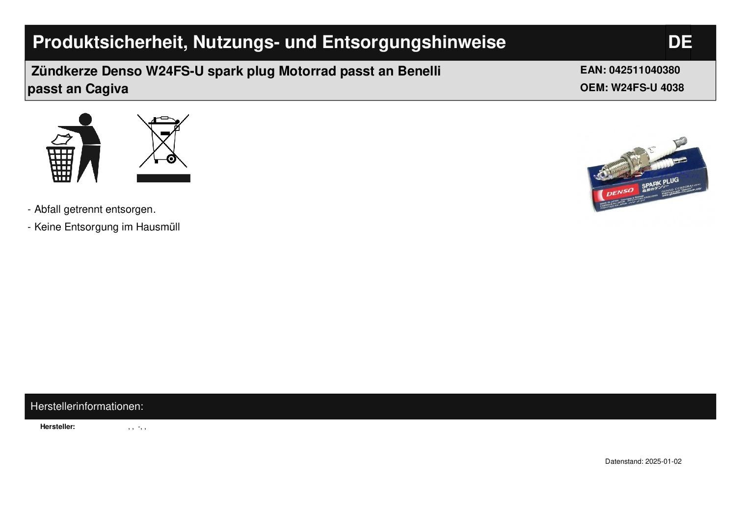 In dieser Auktion gibt es folgenden Artikel zu kaufen: Zündkerze (siehe Foto) Modell: passend für Benelli Bj.: unbekannt passend für Cagiva Bj.: unbekannt Typ: W24FS-U Bitte vor dem Kauf Typ vergleichen! Lieferumfang: 1 Stück Artikelzustand: neu Bei Unklarheiten oder Fragen bitte erst E-Mail schreiben.