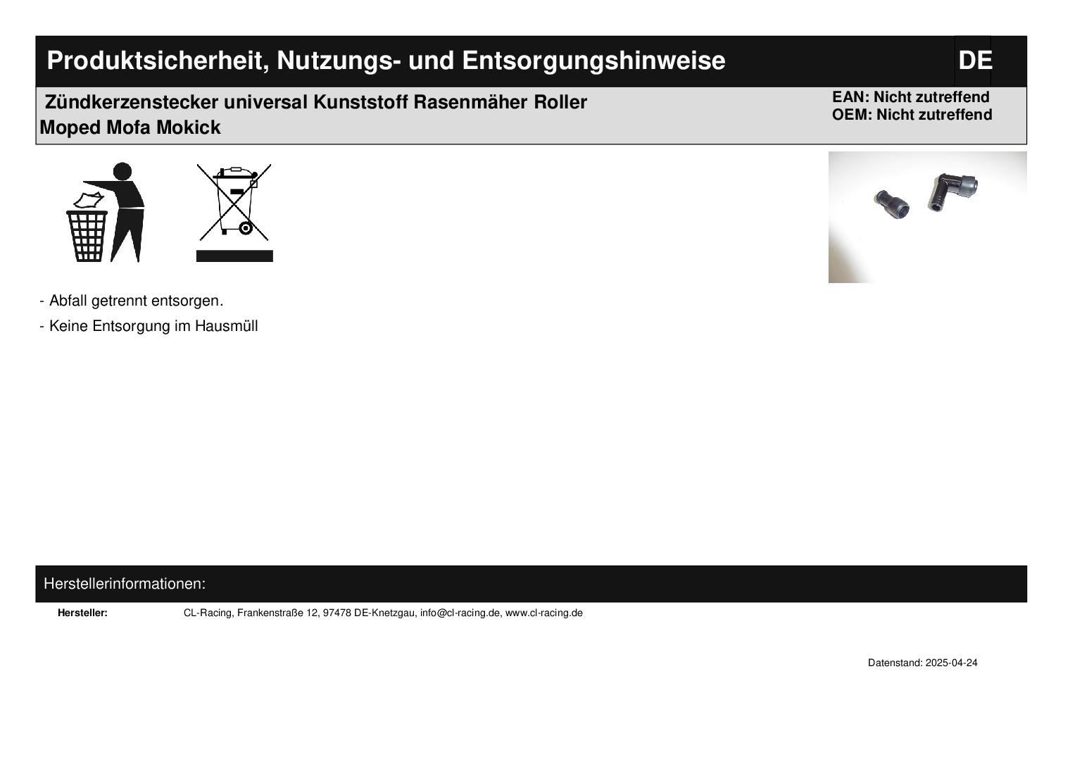 Titel: Zündkerzenstecker universal Kunststoff Rasenmäher Roller Moped Mofa Mokick