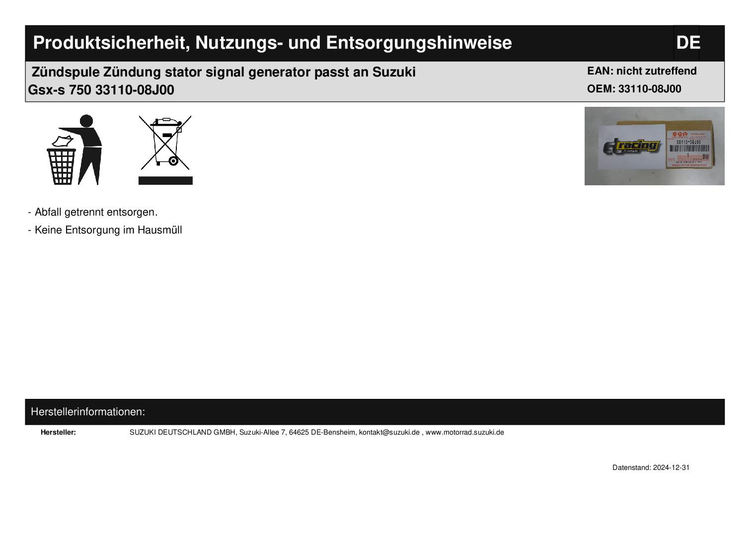 In dieser Auktion gibt es folgenden Artikel zu kaufen: Zündspule (siehe Foto) Modell: passend für Suzuki GSX-S 750 Bj.: 15 - 22 Lieferumfang: siehe Foto Artikelzustand: neu Bei Unklarheiten oder Fragen bitte erst E-Mail schreiben.
